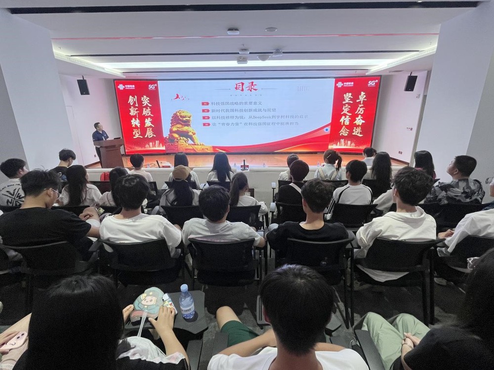 座谈会现场,中国联通兰州分公司人力资源部总经理马理胜以 “科技强国,青春担当” 为题,为同学们带来一场思想盛宴。他深入剖析我国科技发展的前沿趋势与现实图景,以 DeepSeek 在人工智能领域的技术突围,以及宇树科技在机器人研发赛道的创新崛起为例,生动讲述科技企业敢为人先的奋斗故事。马理胜强调,作为央企 “顶梁柱”,中国联通始终将青年人才视为创新发展的核心力量,精心打造多元化成长平台,助力每一位员工在数字浪潮中实现职业理想。他寄语在场学子:“要永葆创新锐气,敢于突破思维定式,将个人理想融入国家战略需求,始终冲锋在前、挺膺担当,让青春在建成科技强国的壮阔蓝图中绽放最绚丽的色彩。