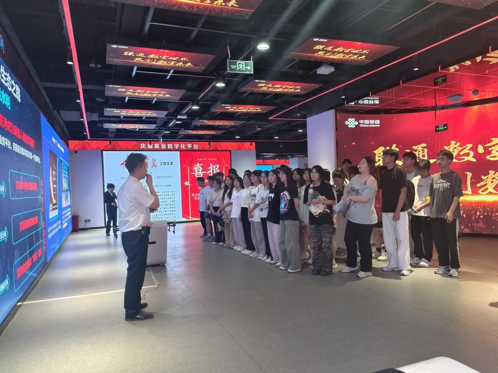 踏入中国联通兰州分公司,学生们在专业导览员的引领下,首先走进企业导览室。光影交错间,一幅幅珍贵的历史照片串联起中国联通波澜壮阔的发展历程,电子沙盘动态展示着兰州分公司在信息通信领域的战略布局与核心优势。导览员重点聚焦近年来企业在 5G、人工智能、大数据、云计算等前沿技术领域的突破性成果,通过全息投影、实物模型等多元展示形式,生动呈现了公司在科技创新、社会服务和数字中国建设中的卓越贡献。同学们穿梭于充满科技感的展区,沉浸式感受着 “连接未来、赋能社会” 的企业使命,科技创新的种子在心中悄然生根发芽,以创新驱动发展的信念愈发坚定。