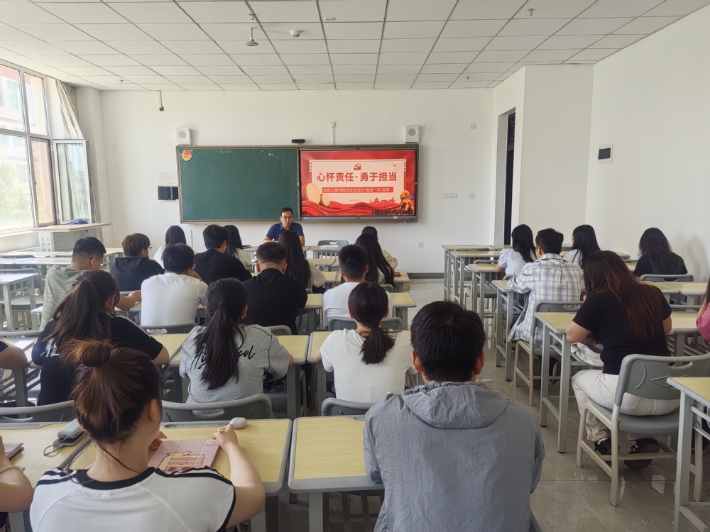 6月16日,信息工程学院组织所有毕业生党员召开“最后一次党课”,本次党课由学院党委书记张计强主讲,全体毕业生党员齐聚一堂,共同聆听这场饱含深情与期望的特殊课程,在毕业前夕接受思想的淬炼与升华。