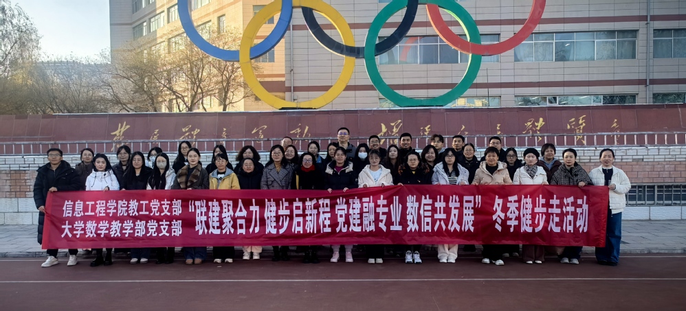 11 月 27 日下午,信息工程学院教工党支部与大学数学教学部党支部,在学校操场联合举行“联建聚合力 健步启新程 党建融专业 数信共发展”冬季健步走启动仪式。全体党员教师佩戴党徽一同参加,仪式由信息工程学院教工党支部书记韩如冰主持。