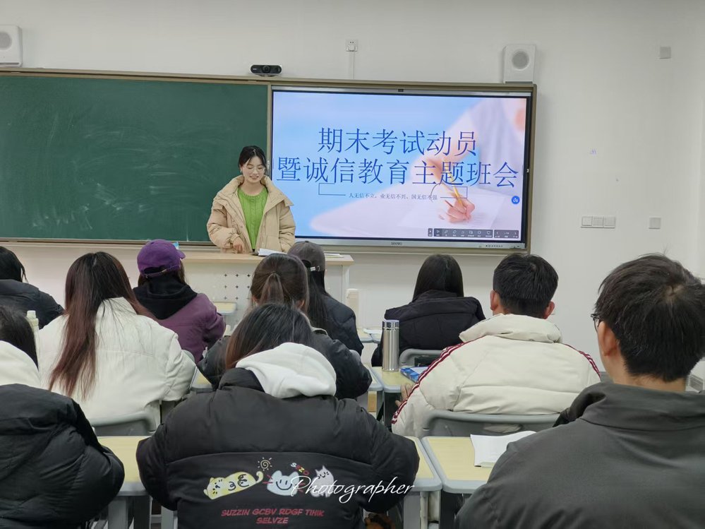为进一步加强学院学风建设,严肃考风考纪,增强同学们的科学备考能力和诚信应考意识。12月15日至22日,信息工程学院组织各班召开期末考试动员及诚信考试教育主题班会。会议由各班辅导员老师主讲。