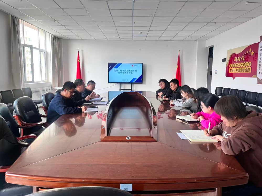 为进一步强化学生安全管理,严肃考风考纪,统筹做好期末及寒假相关工作。14日下午,信息工程学院在综合A807会议室召开期末及寒假学生工作专题会。学院领导班子成员、全体辅导员参会。会议由学院党委书记兼行政院长秦勇主持。