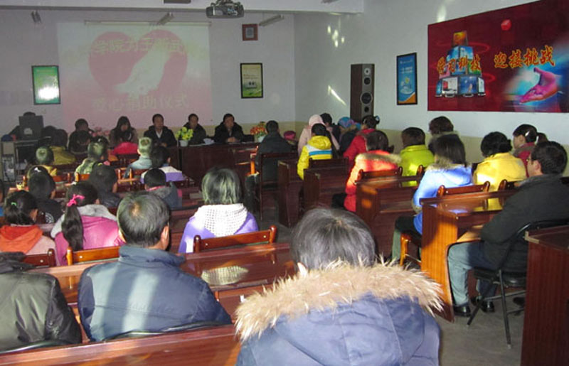 上午10时,山丹三中的多媒体教室里《爱的奉献》在回响,为王兴武同学的爱心捐赠仪式在这里举行。山丹县教育局副局长李积成,三中校长葛军等有关领导参加。2010年暑期“三下乡”社会实践赴山丹三中“关注留守儿童——‘小手拉大手,大手牵小手’”小分队结对帮扶的留守儿童、学生代表、教师代表及王兴武同学的家长共70余人参加了仪式。