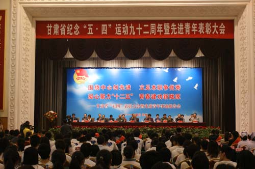 日前,共青团甘肃省委在宁卧庄大礼堂隆重举行了甘肃省纪念五四运动92周年暨先进青年表彰大会。省委副书记鹿心社出席会议并作了重要讲话,省人大副主任崔玉琴,省军区副政委樊印光,武警甘肃省总队政委刘武,省政协秘书长石晶出席了大会。