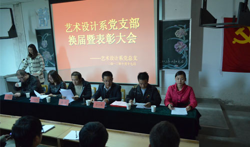 2012年10月17日下午,我系在善问楼315教室,组织召开“2012—2013学年度艺术设计系党总支及学生党支部”换届暨表彰大会。系党总支书记潘侠老师、教工党支部书记周海燕老师、学生第一党支部书记白砚迪老师、学生第二党支部书记张小龙老师出席了本次会议,会议由学生第二党支部副书记金丽君同学主持。