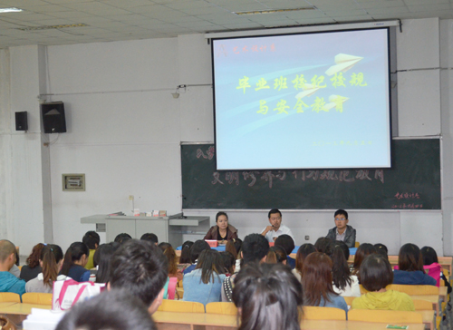 新学期伊始,根据学院会议精神和要求,艺术设计系于9月5日下午在2号教学楼415教室召开了毕业班学生“校纪校规与安全教育”主题班会。艺术设计系党总支书记尚飞同志,党总支副书记、行政副主任周海燕同志以及毕业班215名同学参加了会议。会议由毕业班辅导员张小龙同志主持。
