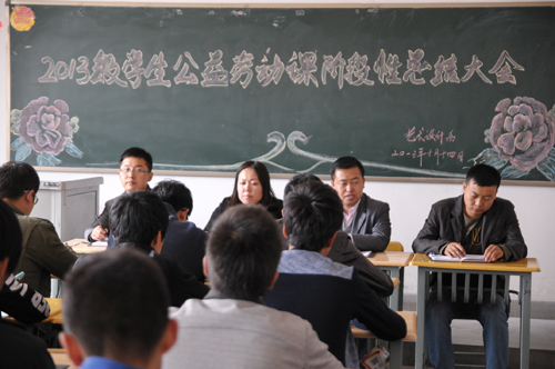 为深入贯彻落实学院《关于从2013级学生开始增加公益劳动课的实施意见》(陇桥院发〔2013〕105号)的文件精神,为了进一步总结经验,同时对前一个月的工作进行总结讲评,并听取各班学生的反馈意见,使此项工作长期持久的开展下去,建立长效机制,我系于10月14日下午13:00在2号楼304教室召开了2013级学生公益劳动课阶段性总结大会,艺术设计系党总支书记尚飞同志、党总支副书记兼行政副主任周海燕同志、新生班班主任张小龙老师、陈志昊老师以及大一各班学生辅导员、班长、生活委员和学生代表共计四十多人参加了大会。会议由党总支书记尚飞同志主持。