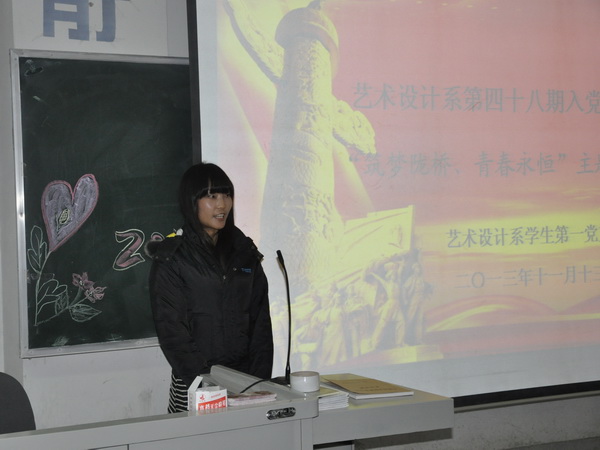 为了加强入党积极分子之间党课学习心得的交流学习,为同学们提供一个锻炼自我、展现自我的平台,根据艺术设计系党总支入党积极分子培训计划和安排,
