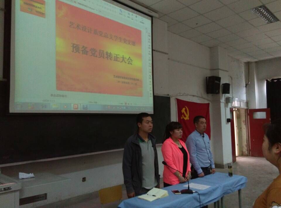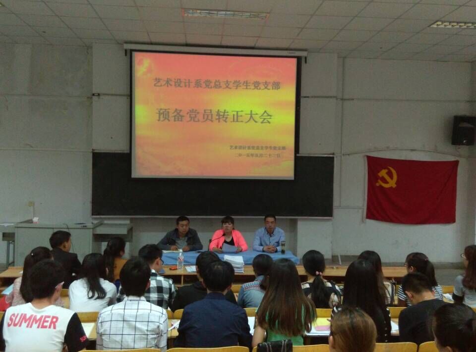 根据学院党委关于2014-2015学年第二学期党员转正发展工作的具体安排和要求,艺术设计系党总支学生党支部于5月22日下午2:30在2号教学楼415教室召开了艺术设计系预备党员转正大会,艺术设计系党总支副书记、行政副主任周海燕同志、党政秘书陈志昊同志,学生第二党支部书记张想宏同志及部分正式党员、拟转正的预备党员同志共计70余人参加了大会,会议由党政秘书陈志昊同志主持。