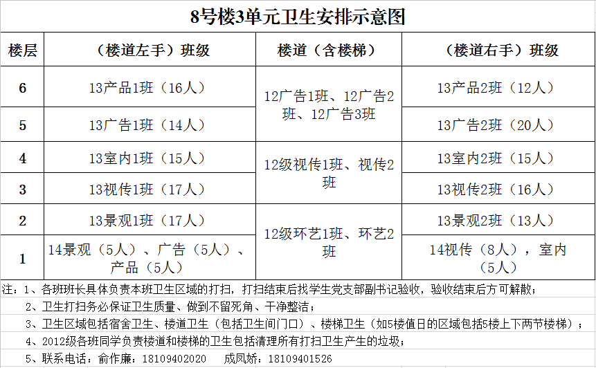 艺术设计系党总支高度重视此项活动,为保证各项工作有序开展,劳动开始前,周海燕副书记专门安排制定了《8号楼3单元卫生安排示意图》,召集各班班长进行劳动安排,包括责任区域分工,卫生工具、安全等问题,同时为学生发放口罩。