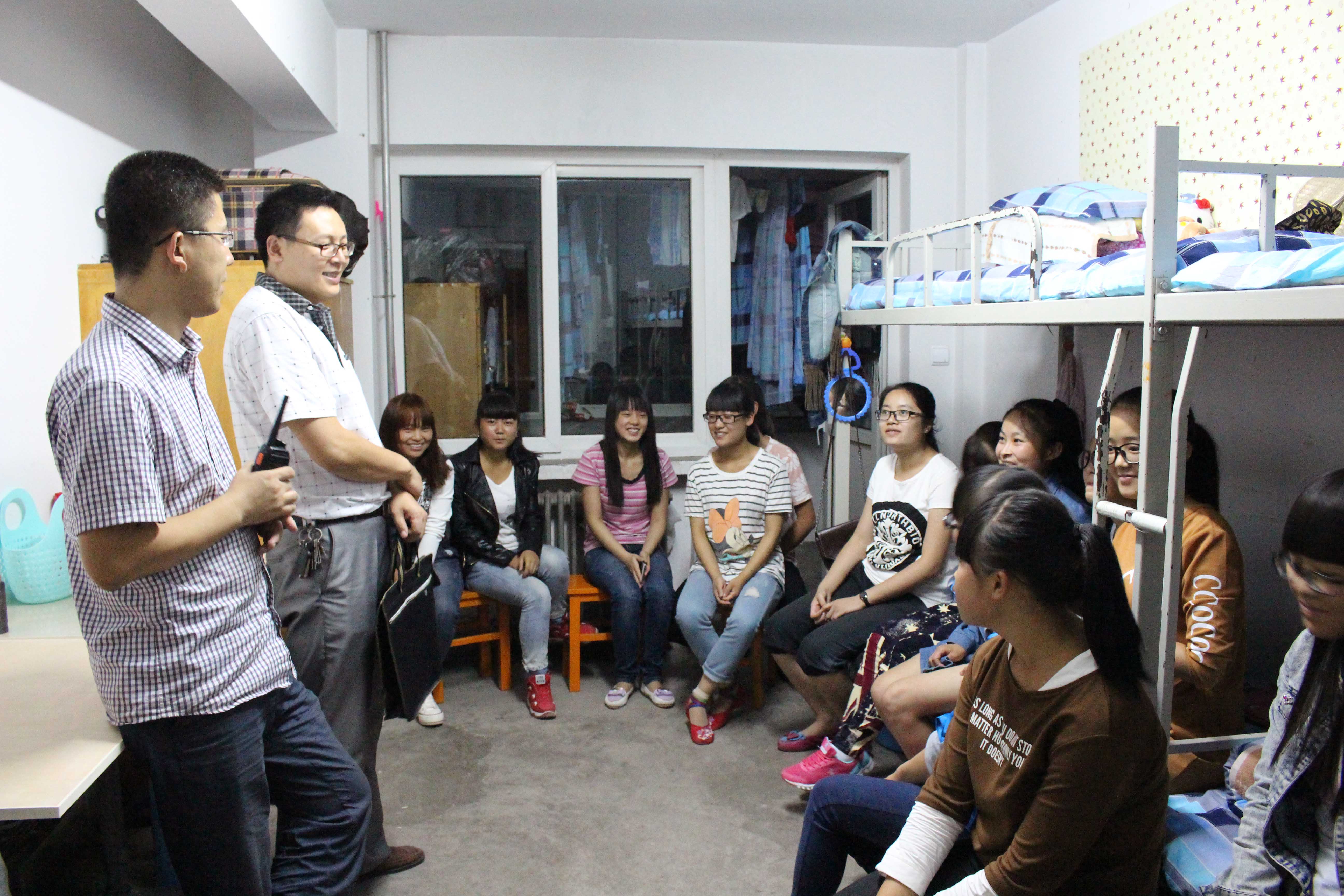 9月6日晚7时,组织5个新生班级召开第一次班会,对学院一直强调的“三个严禁”等重要要求,及时传达,并要求同学们从入学开始,就加强纪律观念,勤奋学习;8时半,系领导深入2015级新生宿舍进行看望,积极引导,深情叮咛,温暖了每个新生;在今后为期五天的入学教育工作中,将邀请系主任燕宏副教授、思政教学部老师和系上其他相关人员一起进行专题教育,力求实效,确保入学教育质量。