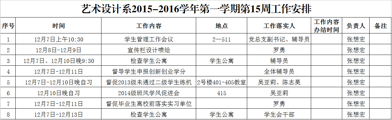 艺术设计系2015-2016学年第一学期第15周工作安排