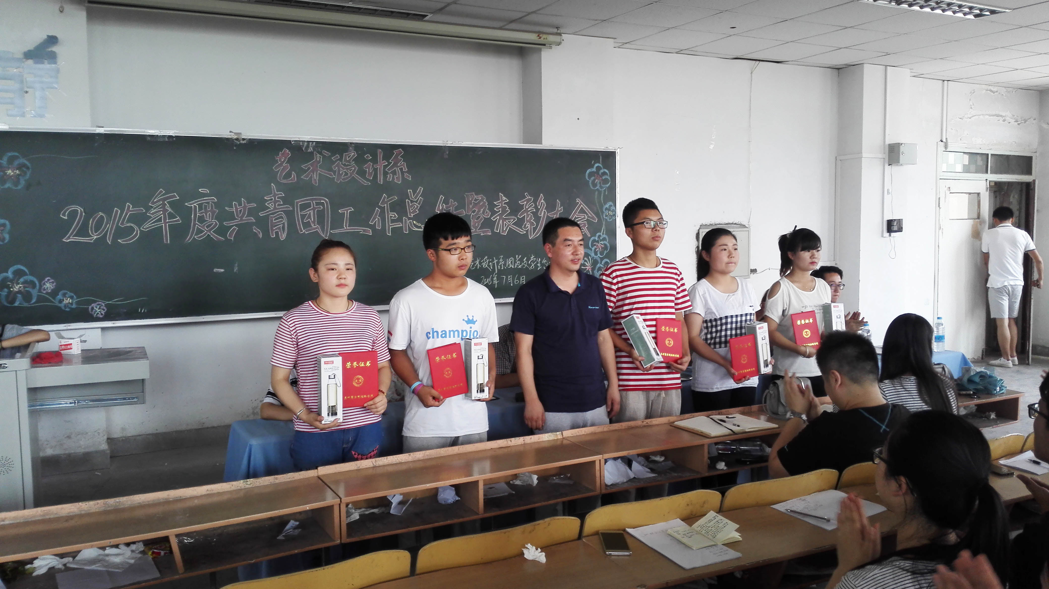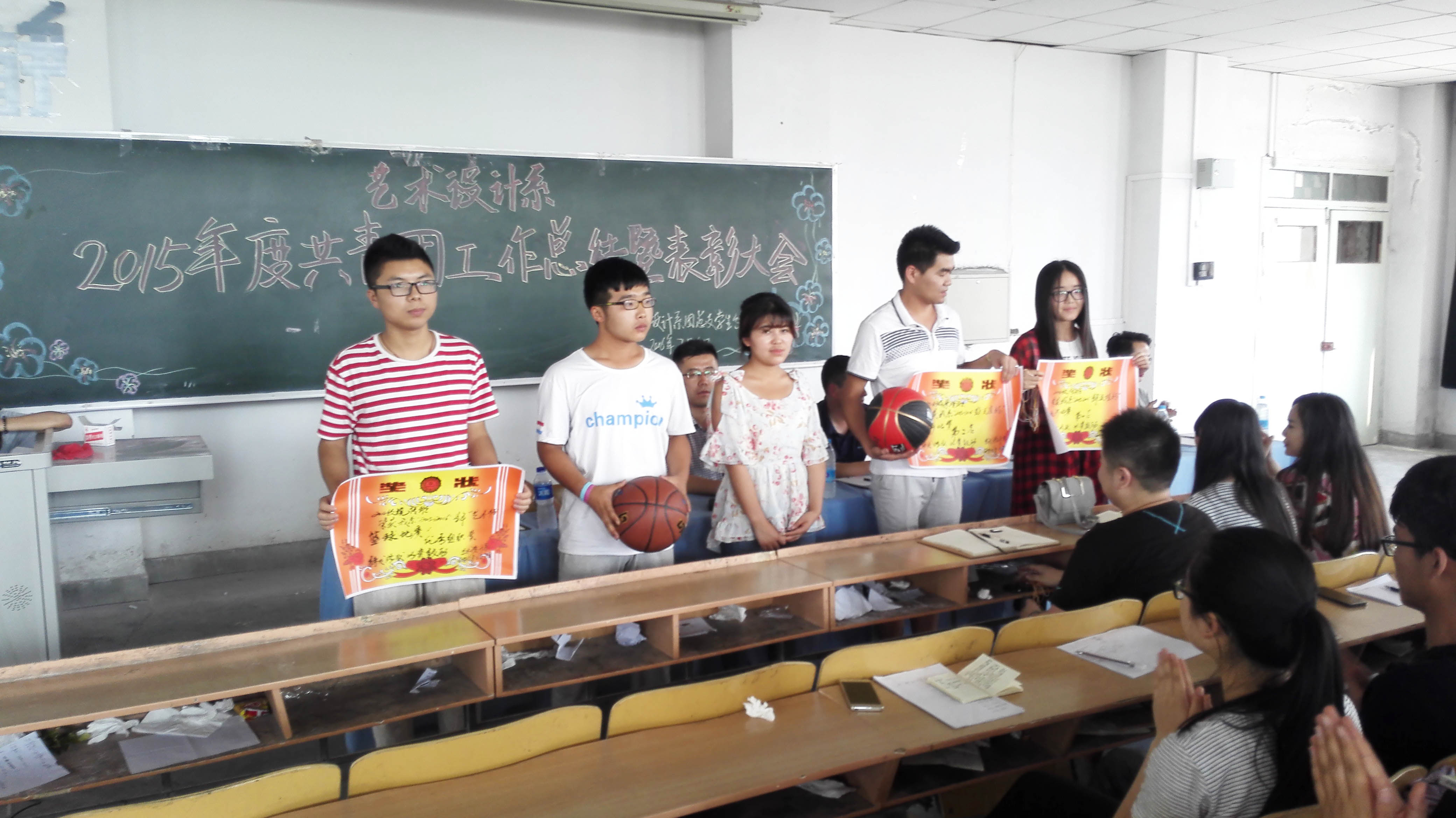 在奏唱雄壮的国歌之后,系团总支副书记郭思佳同学和系学生分会主席曹智翔分别作本学年团学工作总结,认真回顾了一年来的团学工作;系党政秘书陈志昊老师宣读了《关于表彰2015年度共青团工作先进个人的决定》,会上对荣获2015年度系“优秀共青团干部”、“优秀共青团员”、“艺术杯”拔河比赛和篮球比赛的学生代表和班集体进行了表彰奖励。