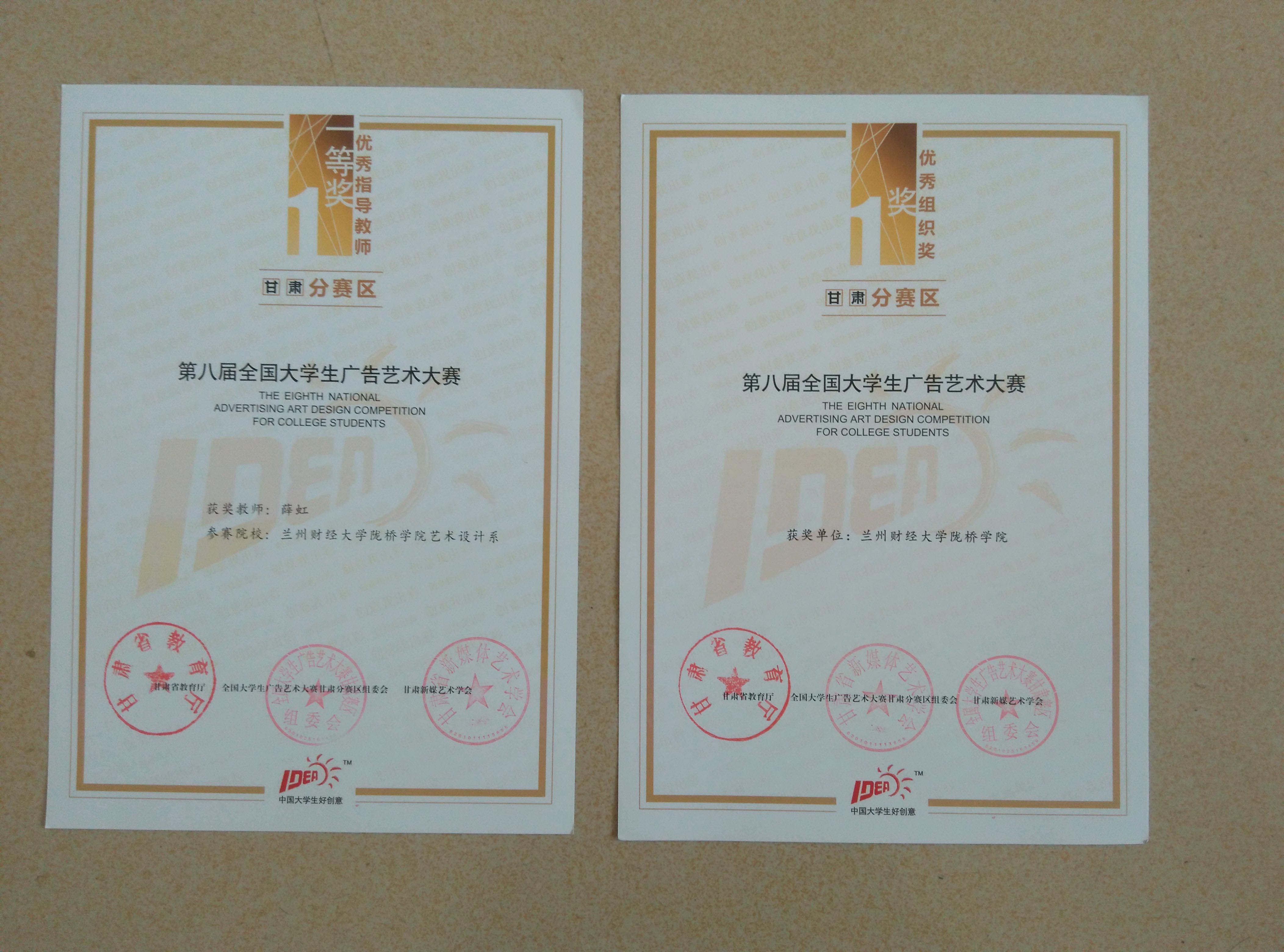 根据学院关于深入推进创新创业教育,深化内涵发展,全面提高人才培养质量的总要求,艺术设计系结合专业建设实际,立足应用型人才培养这一根本着力点,积极组织学生参与课外学术竞赛活动,提高学生的创新创业能力。在近日结束的第八届全国大学生广告艺术大赛中,获得一等奖一项,三等奖六项,我院被授予优秀组织单位,我系薛红老师被评为优秀指导教师。