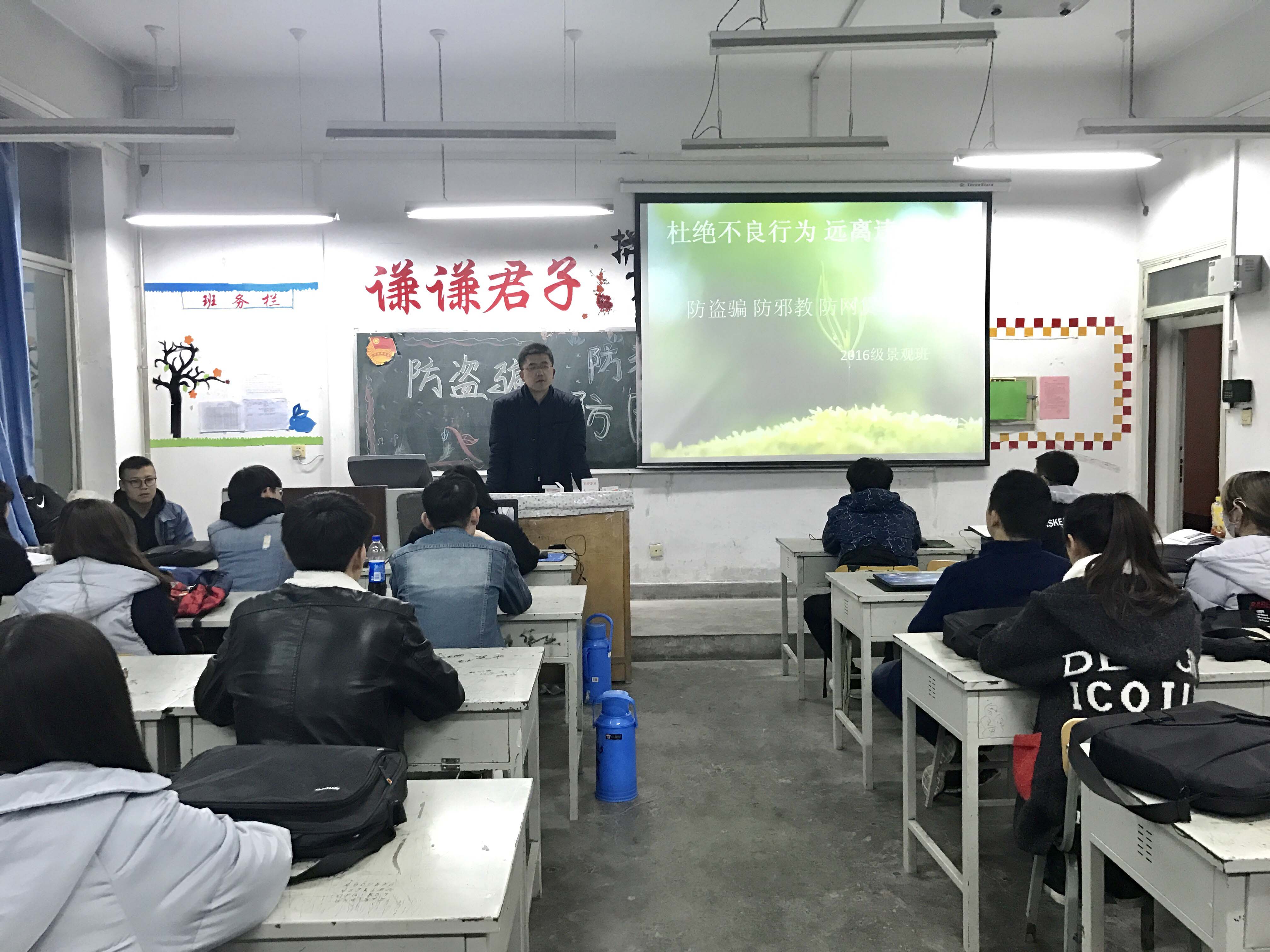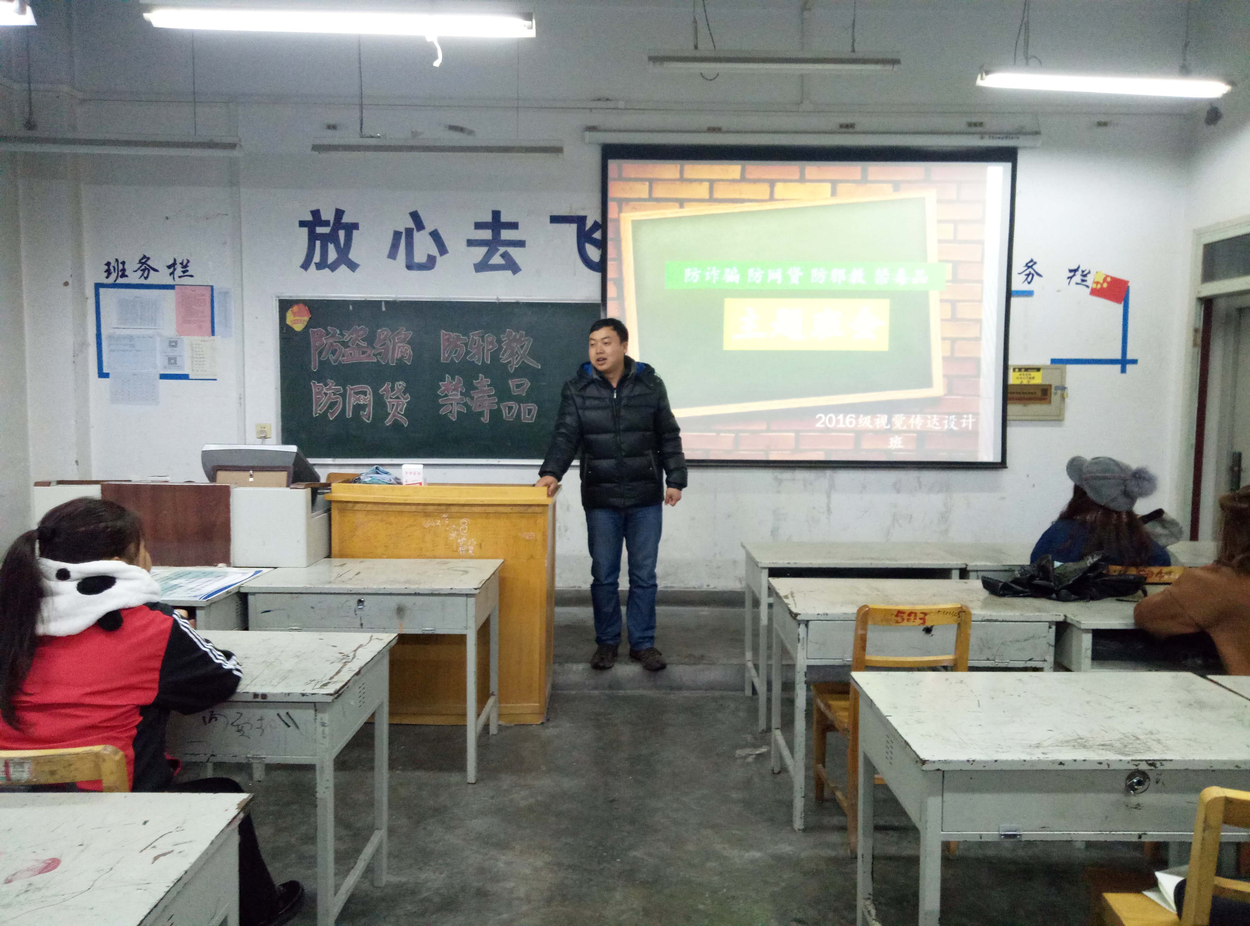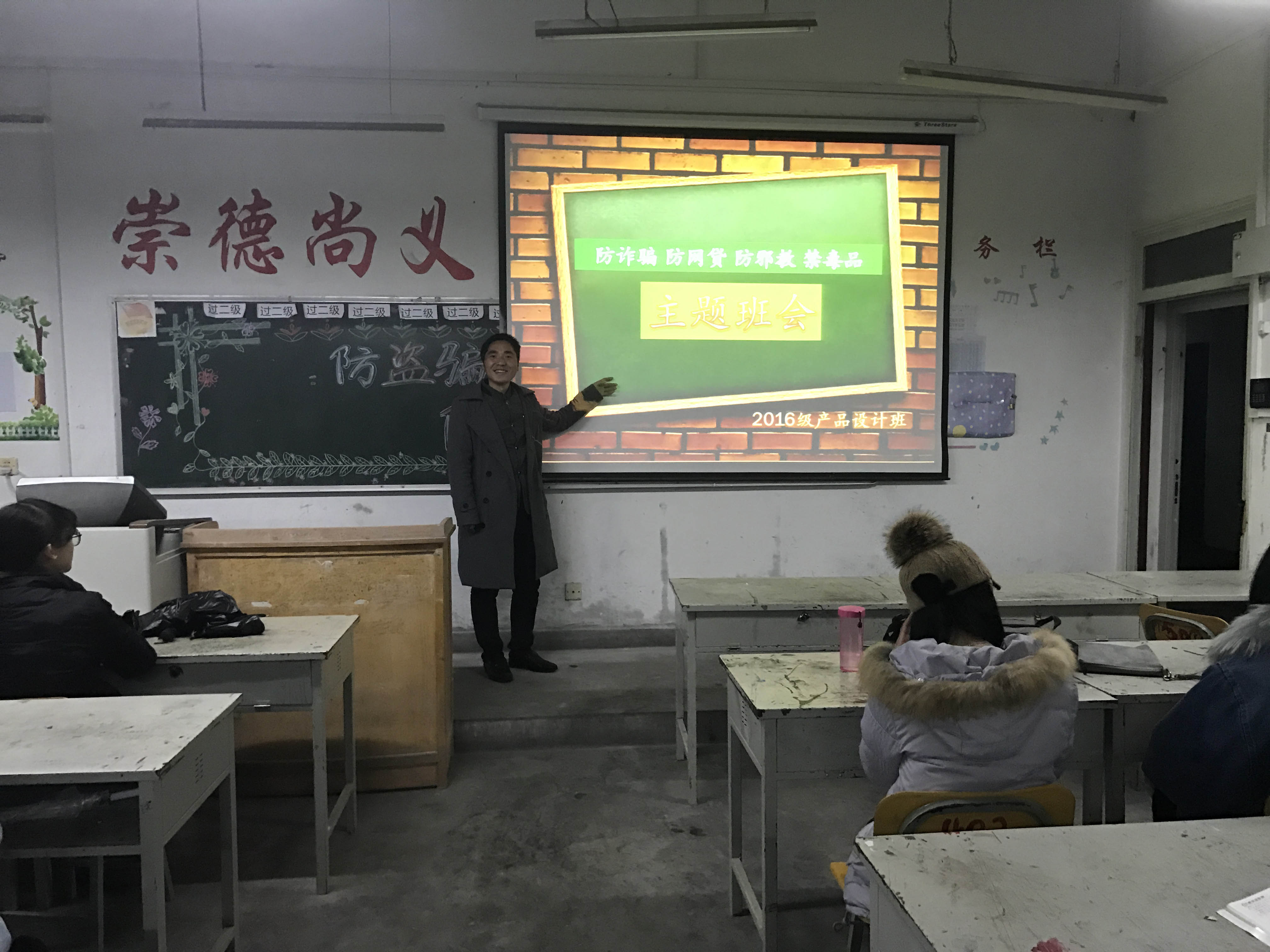 根据学生处关于校园安全工作的通知,为引导学生树立高度的安全意识,自觉抵制校园不良风气,共同建设健康校园, 3月12日晚,艺术设计系党总支副书记张想宏及全体辅导员深入全系各在校班级组织开展 “防盗骗、防邪教、防网贷、禁毒品”主题班会。