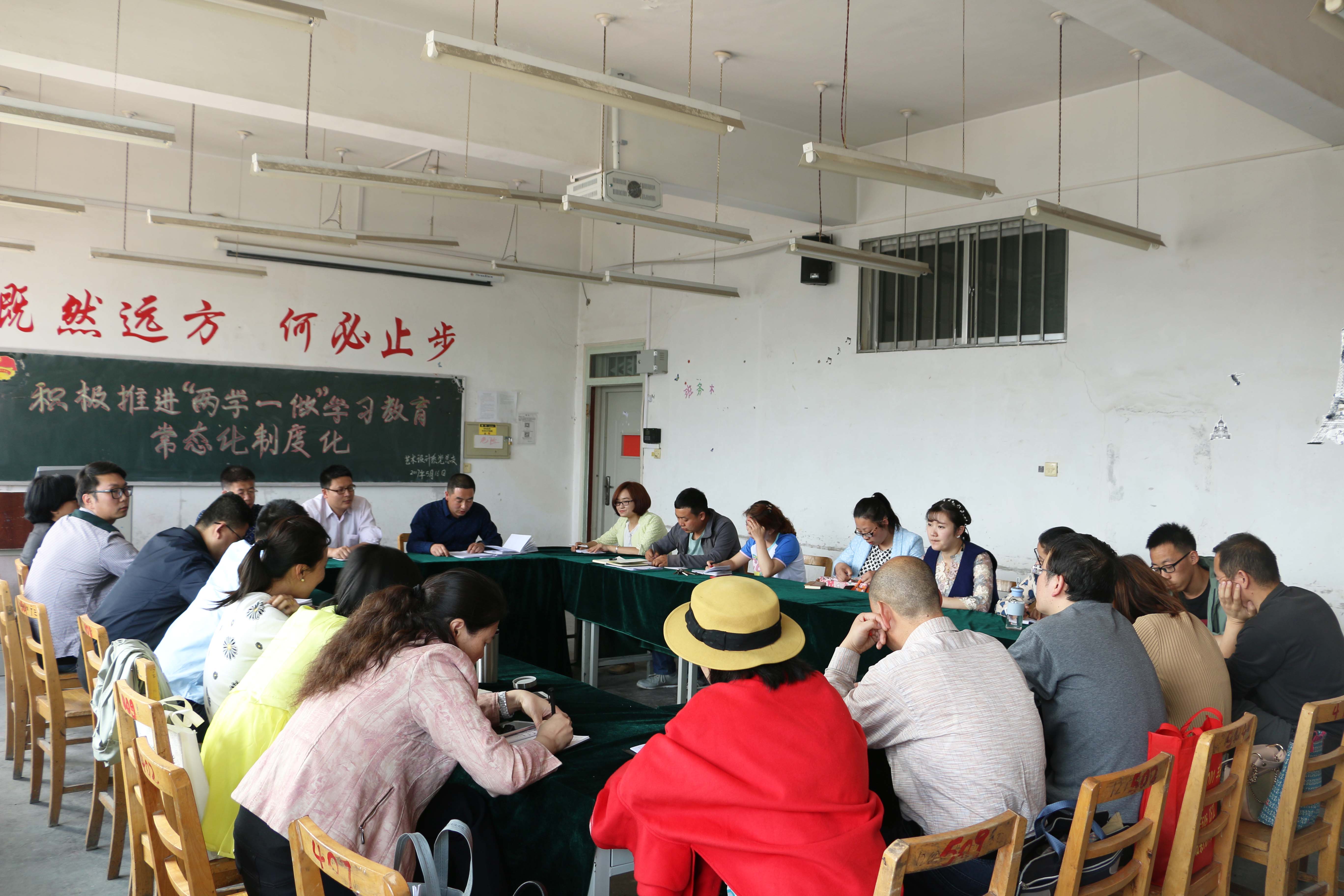 根据学院党委会议安排,为深入推进“两学一做”学习教育常态化制度化,5月16日下午4:30,我系党总支组织全系教工在2号教学楼506教室参加集中学习,艺术设计系主任张春庆,党总支副书记张想宏,教学副主任闫奇峰及全系教工20余人参加了学习,会议由党总支副书记张想宏主持。