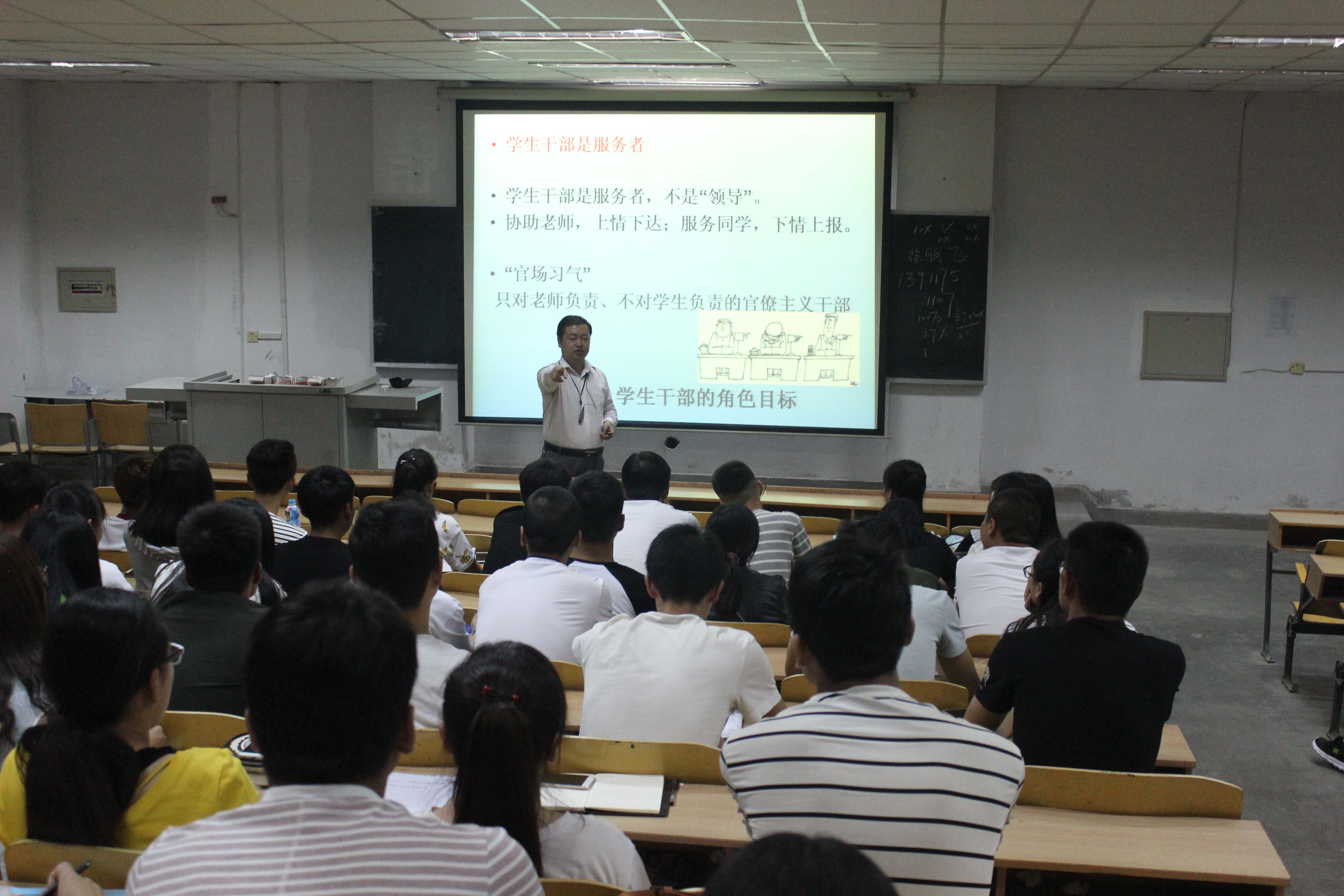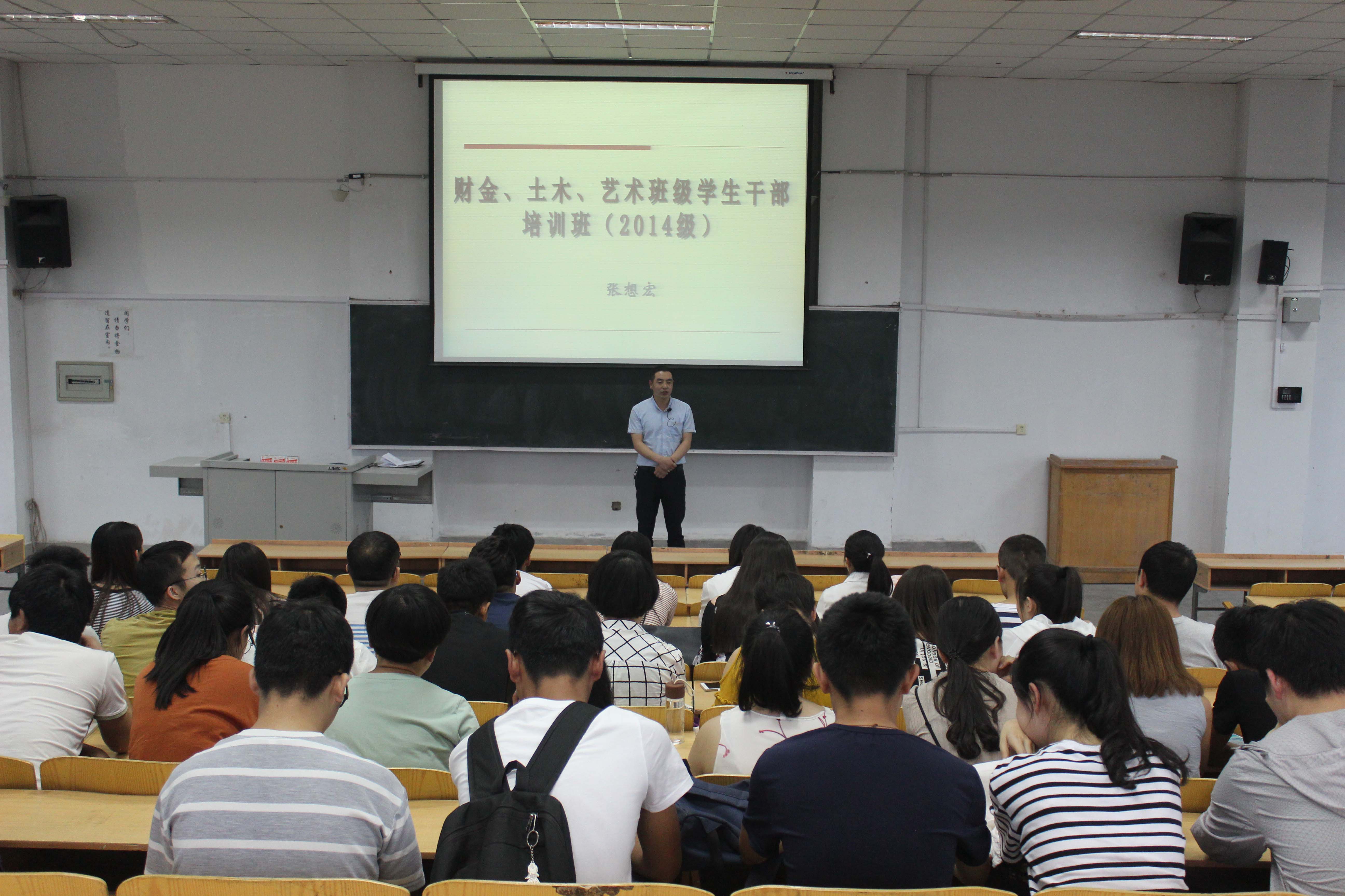 张想宏书记对2014级班干部作了培训。首先,张书记浅谈了自己当班干部的经历,分享了自身当班干部的感想和体会,使同学们对本次会议产生了极大的兴趣;紧接着张书记就“如何当好一名班干部”作了以下几点强调:第一、正确认识作为一名班干部的职责与意义;第二、班干部如何正确的处理学习与工作的关系。第三、如何在求职季发挥好班干部的作用。最后,他对在场的所有班干部寄予了自己的希望,相信每个班级能够在各位优秀班干部的带领下走向团结、走向成功。