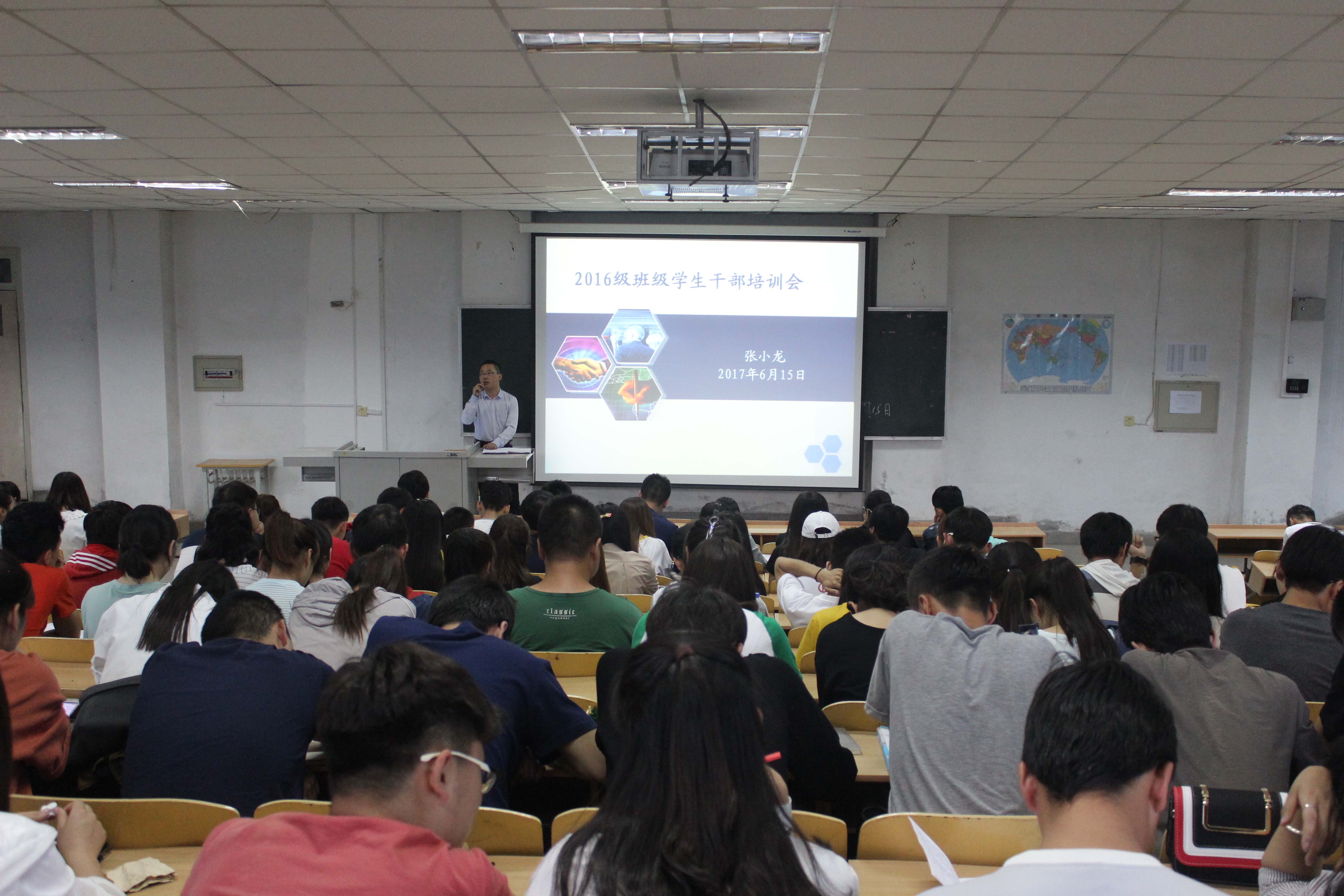 张小龙书记对2016级班干部作了培训。他讲到,班干部是沟通老师和学生之间的桥梁和纽带,有着重要的作用。一个班干部既代表老师的形象,又体现学生的利益,因此班干部在说话、工作时的技巧和艺术尤为重要。并指出好的班干部既具备“六种能力”:管理能力、组织协调能力、观察、分析问题能力、语言表达能力、出主意、想办法能力以及处理突发事件的能力。又善于处理“四种关系”:班干部与同学的关系、班干部之间的关系、班干部与老师的关系、班干部和学习、工作、休息的关系。