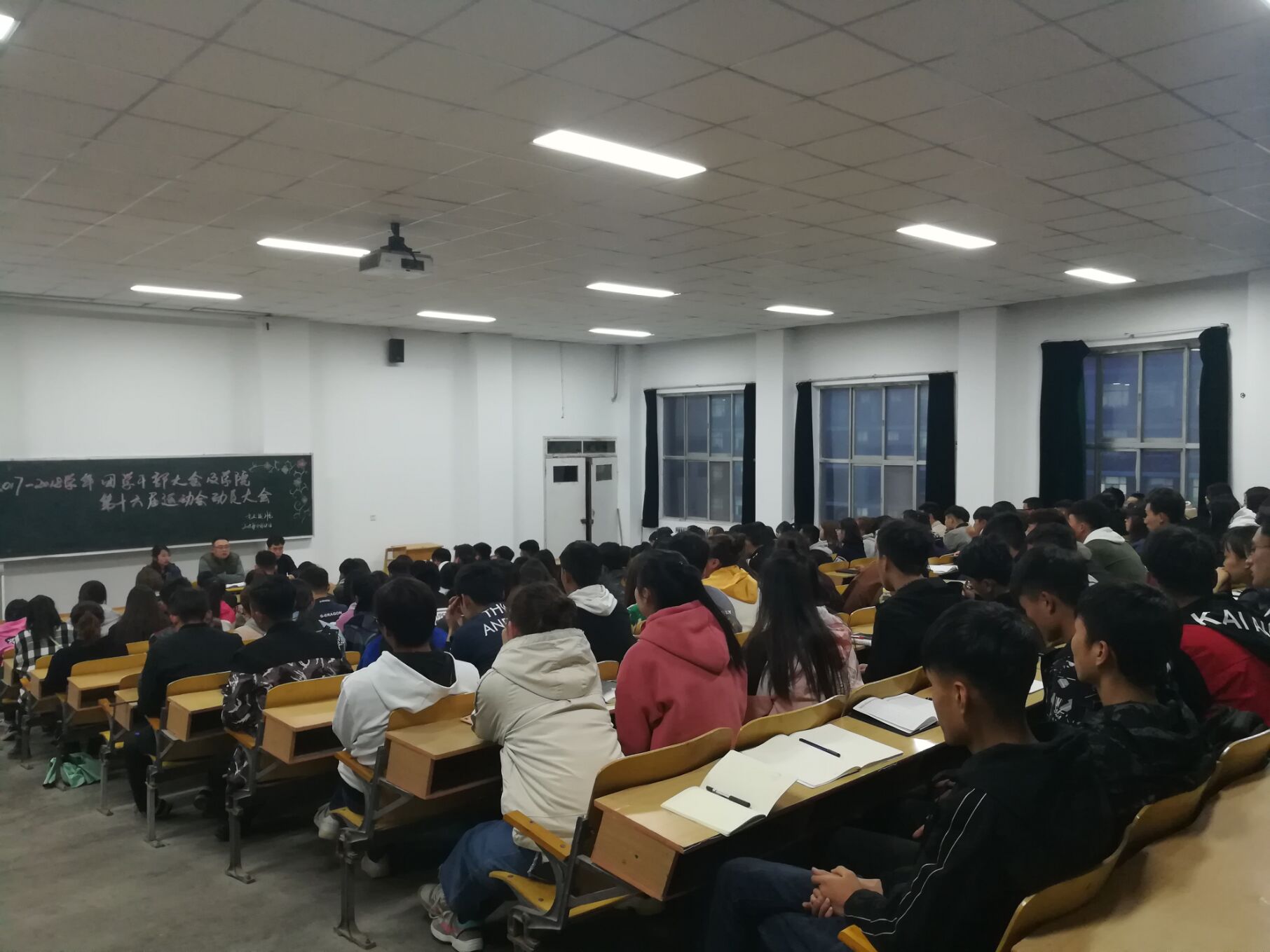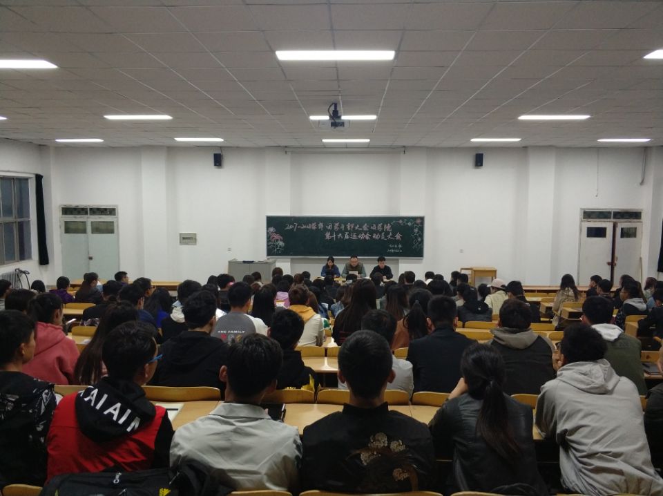 2018年4月12日,在2号教学楼415教室,我系召开团学干部暨第十六届运动会动员大会,本次大会由我系团总支书记花彤书记主持,全体团学干部参加。