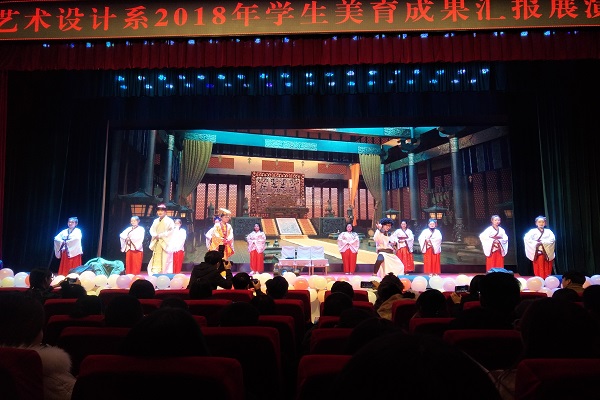 2018年11月18日,艺术设计系在学术报告厅举行艺术设计系2018年学生美育成果汇报展演。本次演出的主要目的在于进一步推进我系美育教育工作,丰富校园文化活动,展示学校艺术教育风采,培养和提高学生欣赏美、创造美的能力。艺术设计系全体师生参加了本次展演。