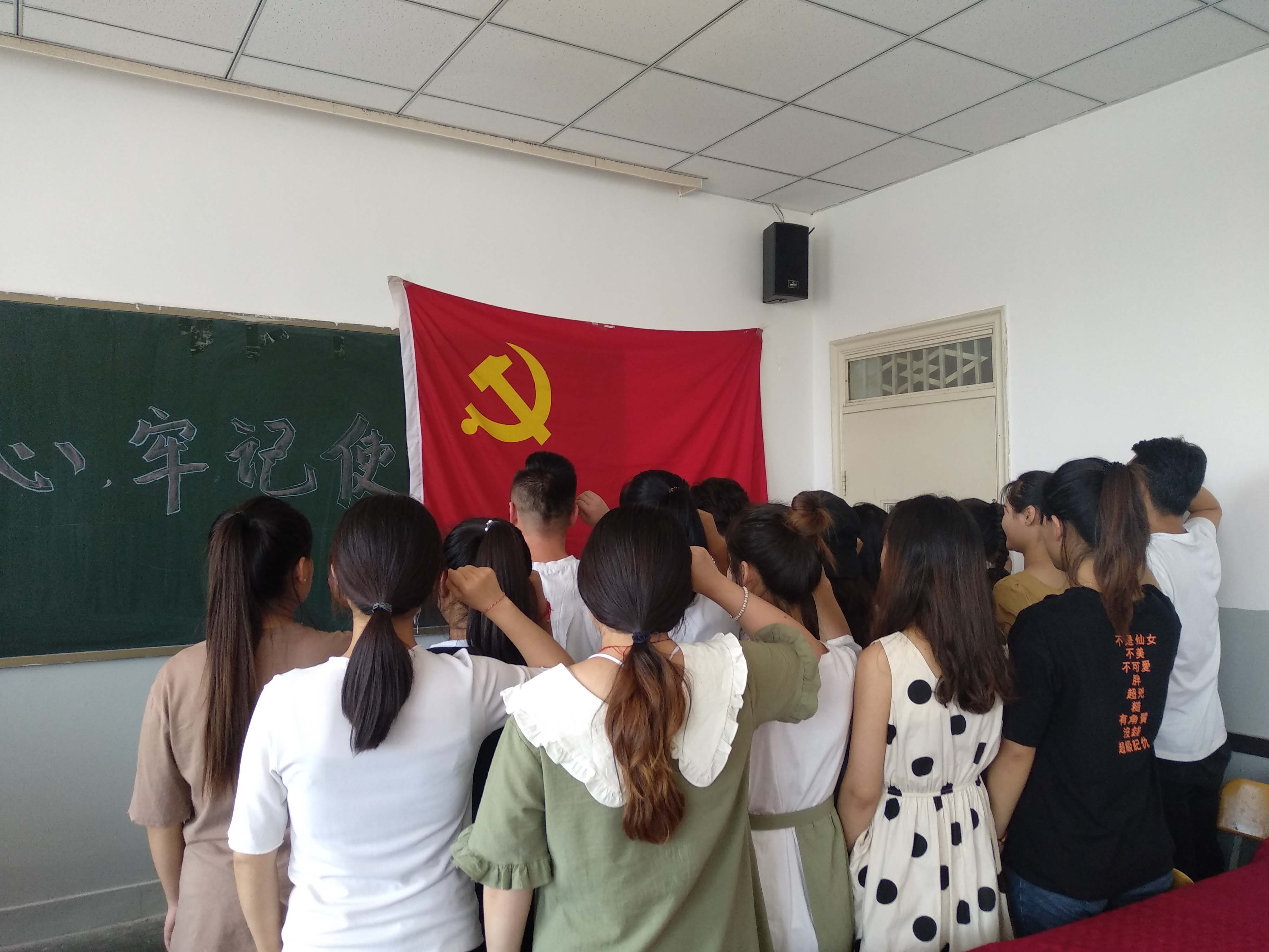 最后,学生党员代表在党旗前重温入党誓词,场面庄重、严肃而又热烈。