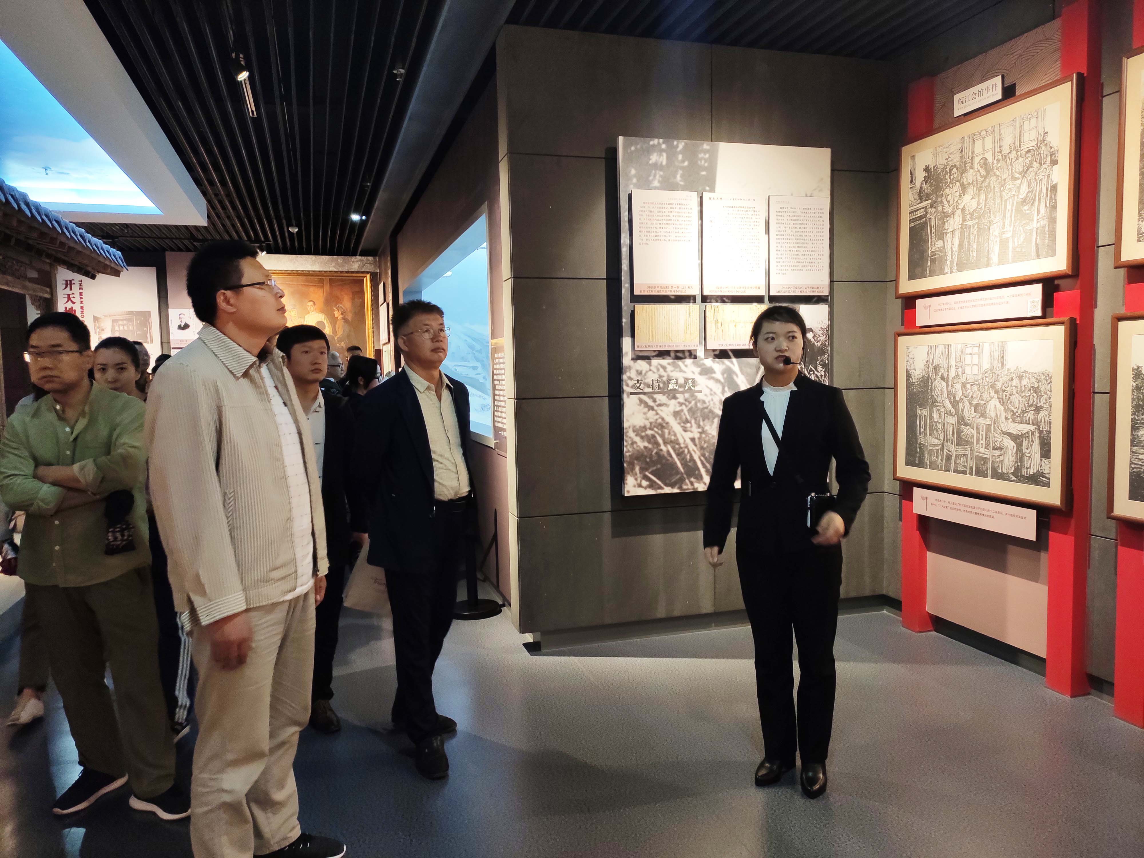 峥嵘岁月,英雄史歌,在一幅幅图片和珍贵资料前;在原榆中朱家沟地下党支部、张一悟落难监狱等一组组仿制实物前;在一件件革命珍贵文物前,大家驻足观看,认真倾听讲解,不时拍照。