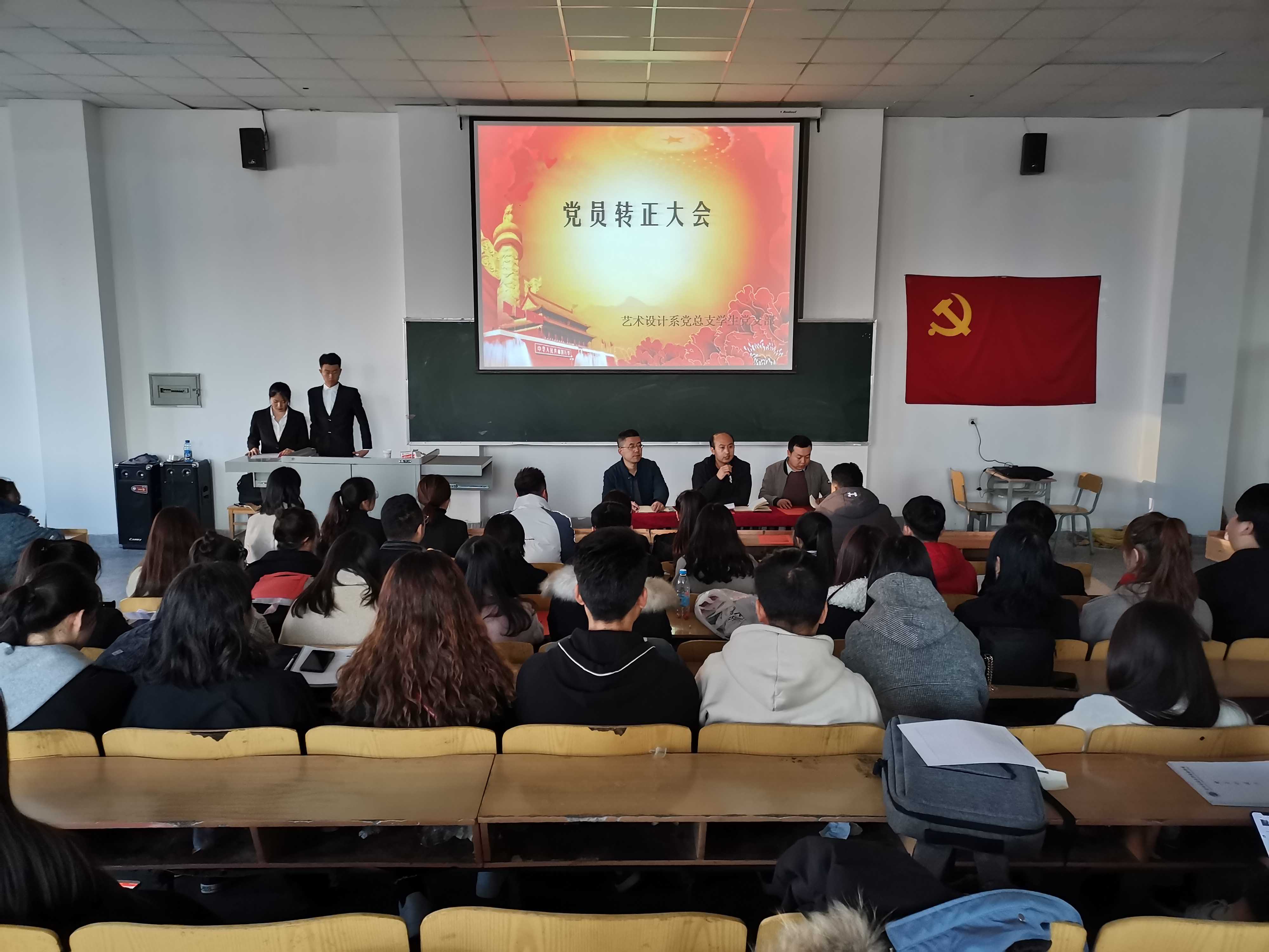 根据学院党委关于做好党员发展和转正工作的具体安排和要求,艺术设计系党总支学生党支部于11月27日下午4:30在2号教学楼415教室召开了2019年下半年党员发展暨转正大会,艺术设计系党总支书记马进宝、党政秘书兼学生第一党支部书记陈志昊同志、学生第二党支部书记罗勇同志及全系学生党员及60期党课学员共计70余人参加了大会,会议由党政秘书陈志昊同志主持。