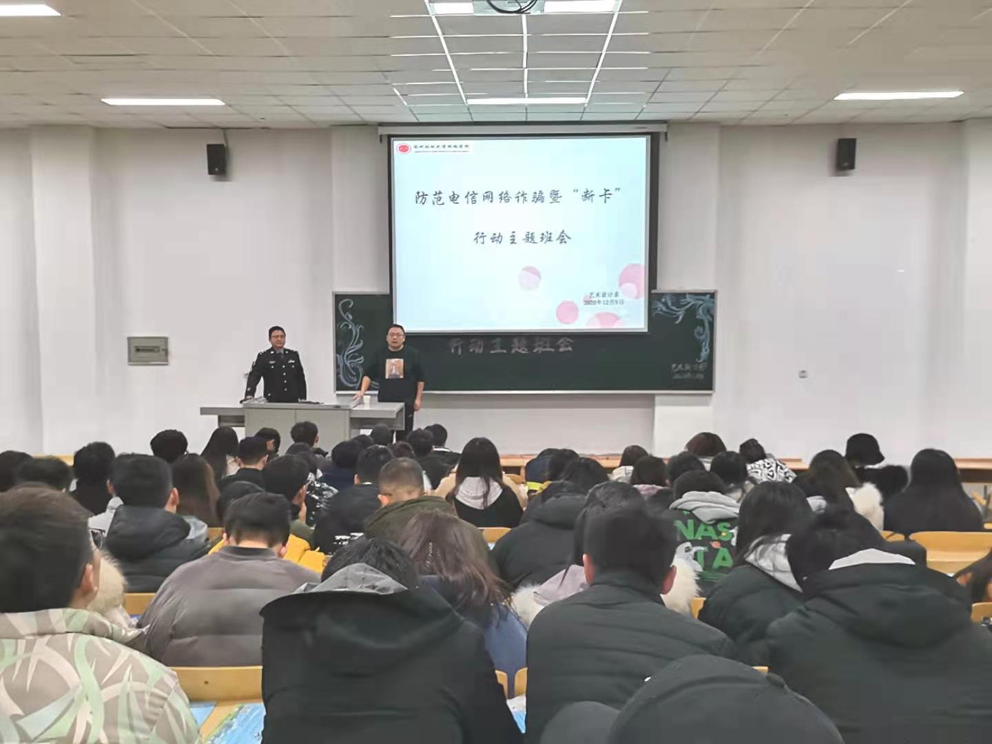 近期,校园网贷,电信诈骗案件层出不穷,为进一步教育和引导师生增强电信诈骗和网贷安全防范意识,提升自我保护能力,12月9日晚上8点我系邀请榆中县公安局和平派出所任警官在善问楼415教室召开了《防范电信网络诈骗暨“断卡”行动宣传主题班会》。