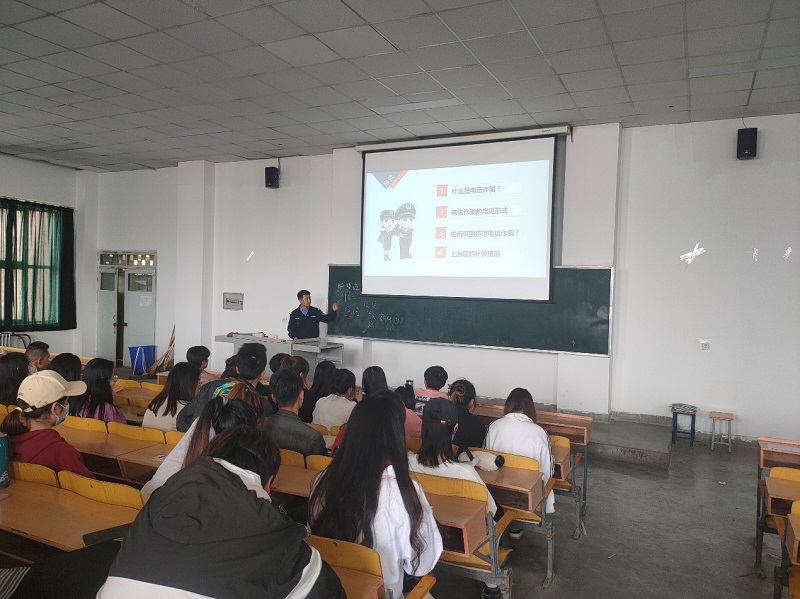 民警同志向同学们介绍当下盛行的诈骗手段,如冒充QQ好友、、网络刷单返利、兼职诈骗等;同时向同学们展示了校园贷套路、跨境赌博等犯罪违法形式;详解了不法分子行骗、引诱大学生参与赌博的惯用伎俩和手段。三位同志结合实际案例,采取了以案说法的方式揭露了多种诈骗伎俩,并由衷提醒广大学生,在日常生活中要提高警惕,切记“天上不会掉馅饼,地上不会长黄金”,更不要因为攀比心理误入跨境赌博,一旦遇到电信诈骗或者跨境赌博,不要害怕,及时向公安机关报警。
