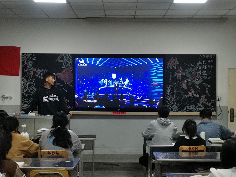 为深入学习贯彻习近平总书记的重要讲话重要指示精神,迎接党的二十大胜利召开,弘扬科学精神、普及科学知识,激发科学梦想和科学志向,推动学生科学素质全面提升, 9月21日晚,我院组织在校学生开展了“喜迎二十大,科普向未来”主题活动,活动由各班团支部书记主持。