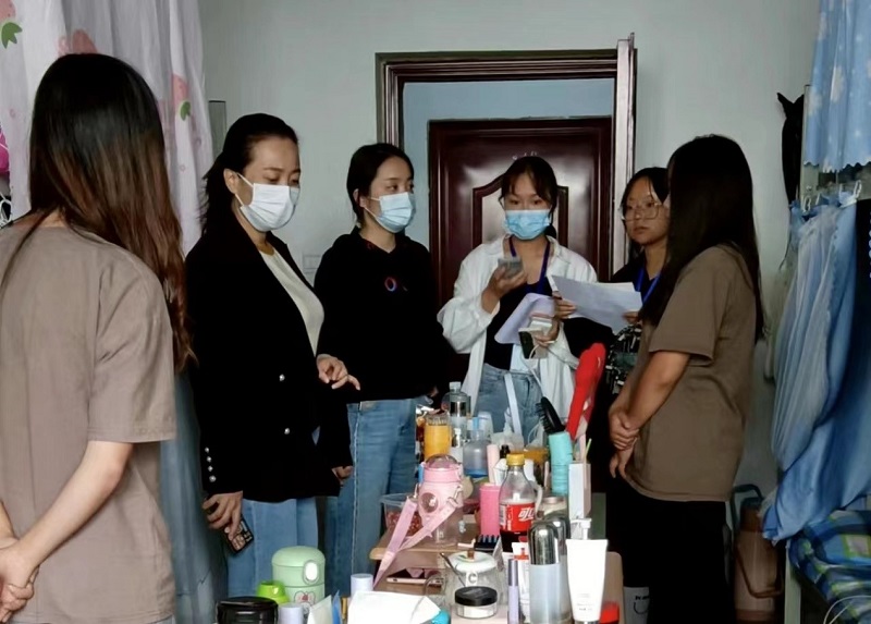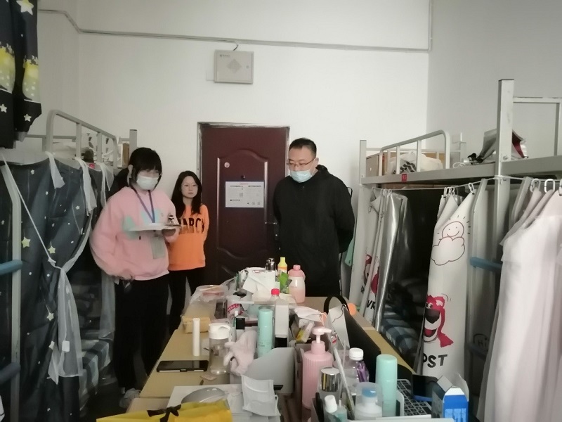 恰逢国庆73周年华诞之际,为进一步加强学生宿舍安全卫生管理,做好国庆前校园安全稳定工作,保障在校同学们的假期宿舍安全,9月27日下午,艺术学院党总支书记周欣、教学院长薛虹、院长助理花彤及辅导员深入各年级学生宿舍开展全面排查。