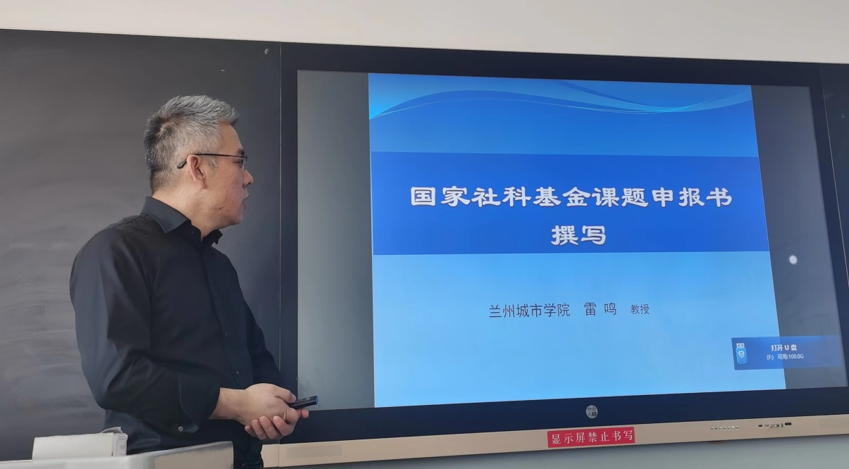 为加快提升艺术学院教师的科研意识与能力,解决教师科研申报中的困难和问题。2023年3月30日艺术学院邀请兰州城市学院传媒学院雷鸣教授来我院做汇报交流,会议由院长张春庆主持,教学院长薛虹及艺术学院全体教师参加。