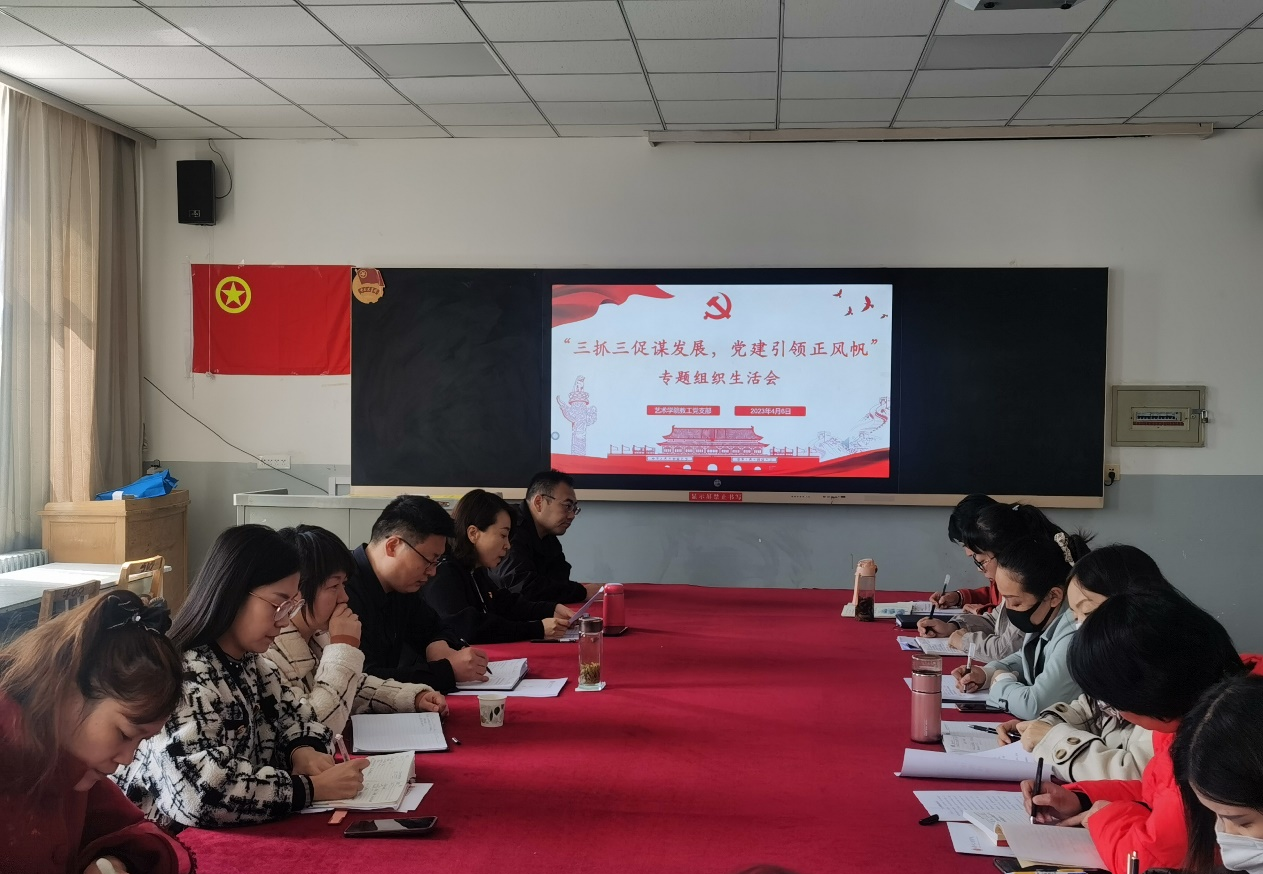 为深入学习贯彻党的二十大精神,坚持不懈用习近平新时代中国特色社会主义思想凝心铸魂,全面落实“三抓三促”行动工作, 4月6日下午,我院教工党支部于2-408教室召开“三抓三促谋发展,党建引领正风帆”专题组织生活会。兰州工商学院副校长徐运敏、艺术学院党委书记周欣出席,学院教工支部党员参加,会议由党支部书记薛虹主持。