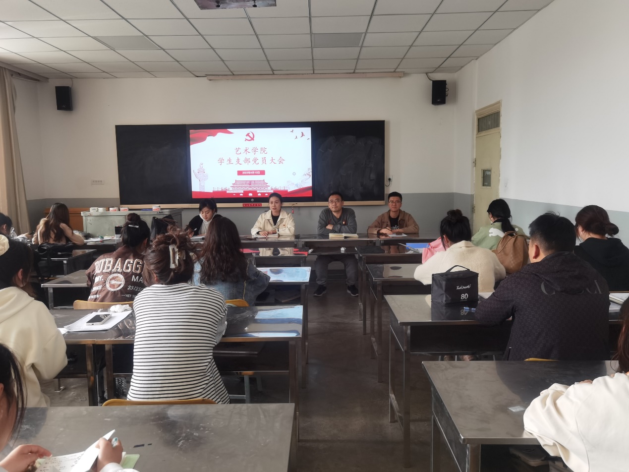 首先,由任文刚宣读兰工商艺术党发〔2023〕5号文件,宣布学生支部调整策略,新增艺术学院学生第三党支部,同时将原第一、第二党支部部分党员转入第三党支部,并任命专职教师罗婧瑄同志为学生第三党支部书记。任文刚表示随着我院学生党员队伍的不断壮大,支部的调整,是为了进一步加强基层党的建设,切实提高党支部工作质量和水平,各位党员同志要快速融入到支部建设当中,不断凝聚支部力量。