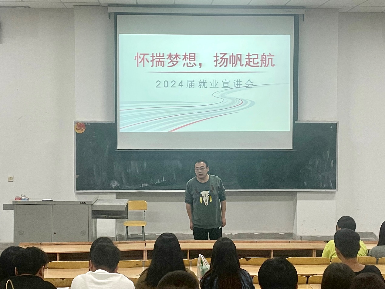 会上,花助理以当前就业形势为导向,从当前严峻的就业现状入手,结合我院专业特点以及就业方向,深入分析2024届学生就业前景,向同学们揭示了当前所面临复杂的就业形势;强调同学们要转变就业观念,树立“先就业、再择业”观念,扎实专业基础理论学习,同时加强实践能力,为明年的就业打造坚实的基础;最后,花老师就同学们普遍比较关注的专业对口问题、就业政策等内容,结合2023届毕业生当前就业情况,通过对近近三年我院各专业毕业生就业数据分析,对同学们进行了专业性解惑。