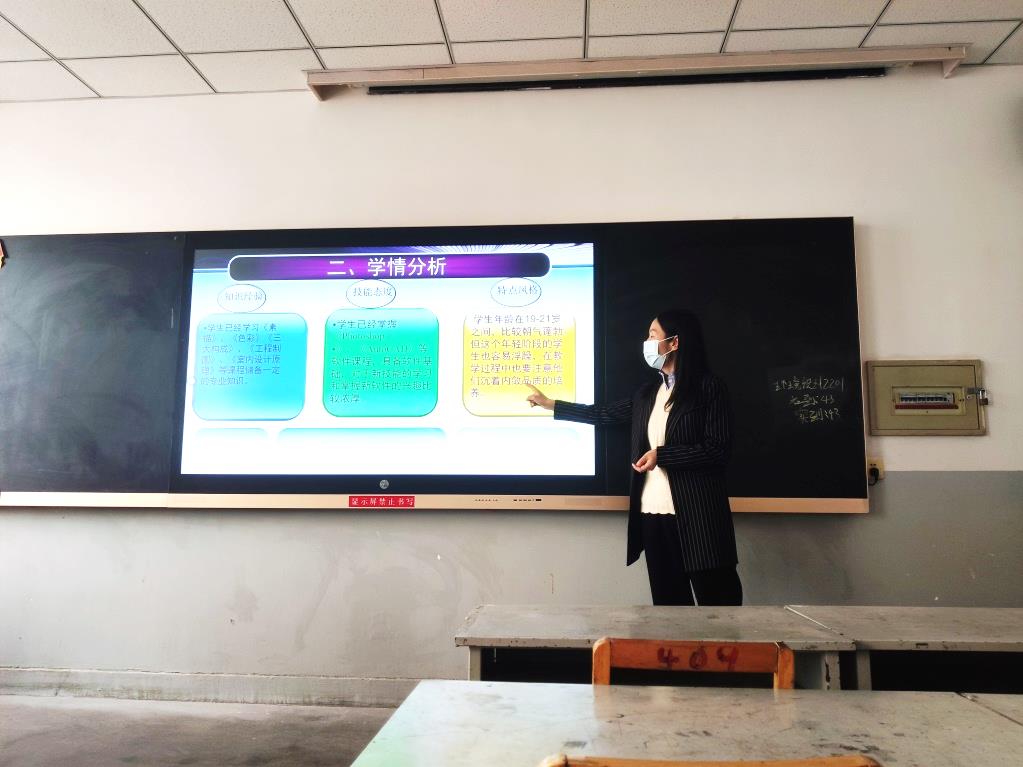 首先,李晓辉老师结合《3DS MAX室内外效果表现》课程内容与教学设计进行了说课教学分享。重点围绕教学目标、学情分析、教发与手段、教学程序以及教学效果五个方面进行展开。重点谈到了教学设计的整体思路,也谈到了在具体课程内容设计中如何提升学生学习兴趣及课程思政同专业发展的灵活融入。