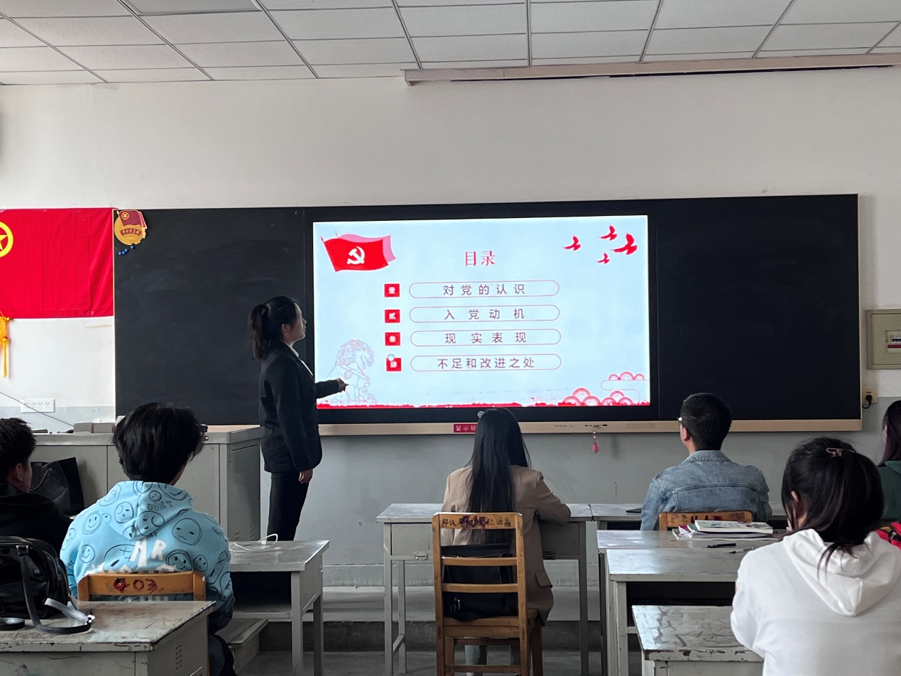 答辩会上,同学们从自己的入党动机到对党的认识,从考察期间思想上、学习上再到工作上的变化向大会进行汇报,并指明存在的问题以及今后努力的方向。接着,评审小组通过学生的自我阐述,重点从入党动机、综合素质等方面考察学生的对党的认识水平和思想成熟度;通过评审组成员的随机提问,考查了学生们的理论知识水平和对时事政治的关心程度,答辩小组根据学生现场表现进行打分。最后,由答辩小组组长进行总结与点评,指出答辩过程中出现的问题,也对发展对象提出了几点要求,一是要强化党性修养,以党员的标准严格要求自己;二是要不断加强理论学习,端正入党动机,做到思想上入党;三是要加强专业知识学习,提升学业职业能力。
