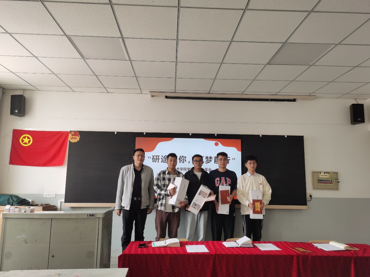 为加强和推进学院考研工作,促进学院学风建设,更好地总结2023届考研成果,同时加强2024届考研工作管理。5月11日下午,我院在善问楼410教室组织召开“研途有你,筑梦前行”考研经验分享会。学院院长张春庆、党委书记周欣出席,2021级、2022级考研意向学生参加,会议由2020级辅导员任文刚主持。
