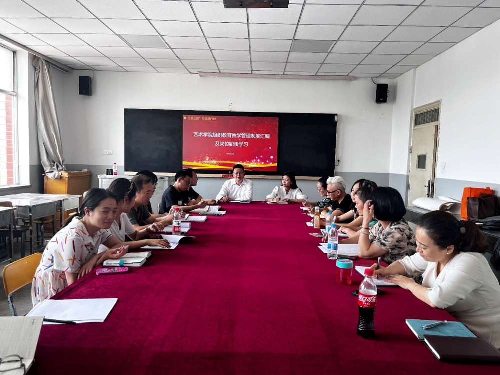 为进一步提升我院教师对学生就业、创业、学科竞赛等方面工作的规范化、精细化与科学化指导,提升我院教师业务水平, 6月29日下午14:30,艺术学院组织全体教职工在善问楼504教室集中学习兰州工商学院《教育教学管理制度汇编》中有关学生就业、创业及学科竞赛相关管理办法。院长张春庆、党委书记周欣、教学院长王坤、院长助理花彤出席,全体教职工参加学习,王坤院长领学。