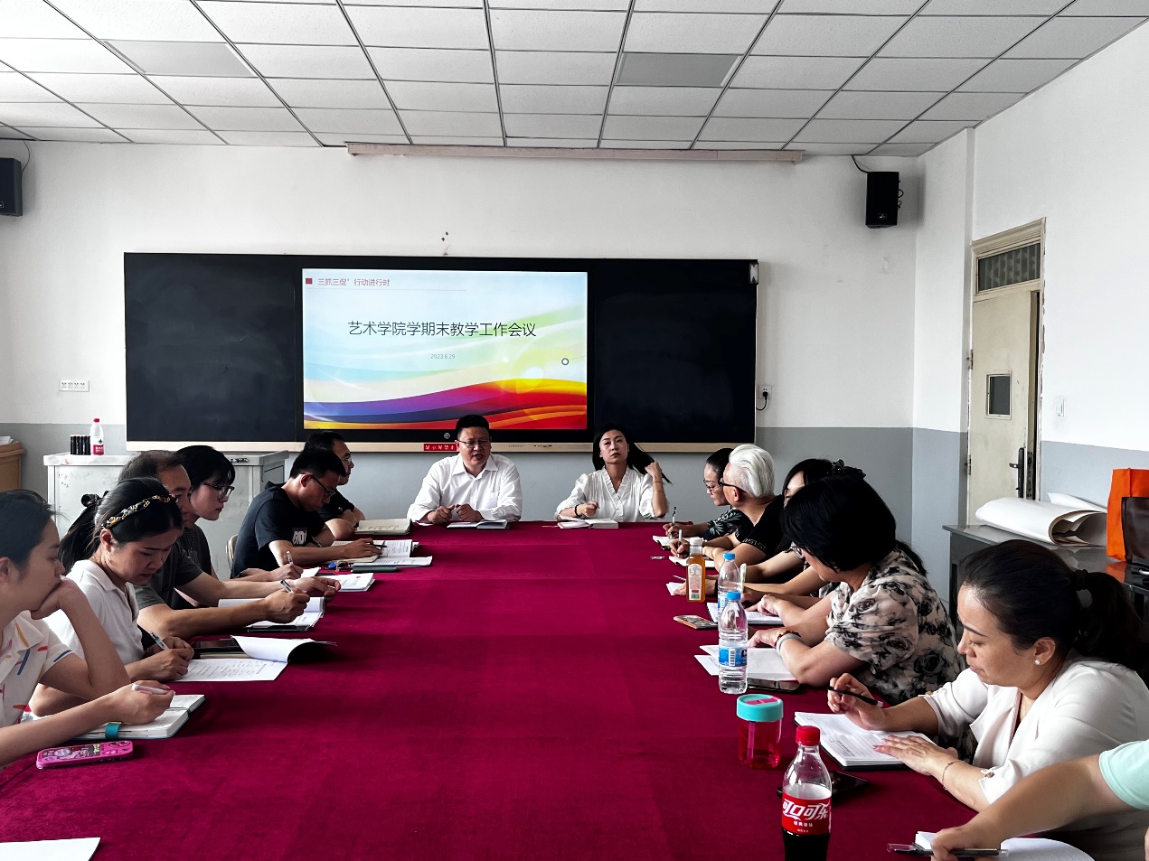 为保持良好的教学运行秩序,有序推进学院教学工作, 6月28日下午15:30,艺术学院组织召开期末教学工作会议,院长张春庆、学院党委书记周欣、教学院长王坤、院长助理花彤出席,全体教职工参加学习,会议由王坤主持。