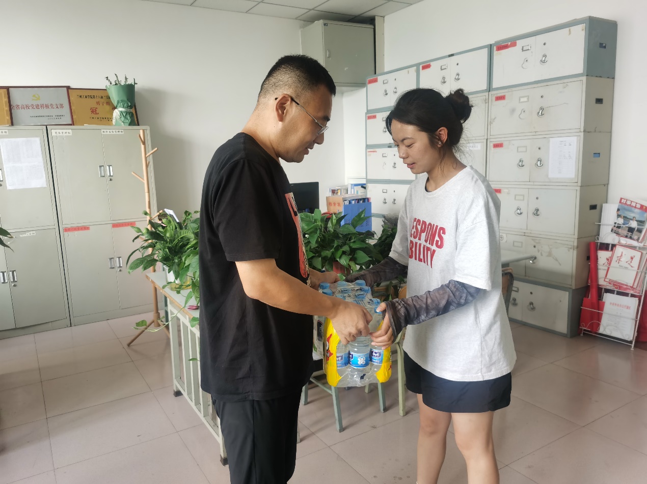 领导们认真聆听了同学们在生活上的困难以及对考研管理的的建议,并做了一一记录,会后,学院为考研学子们购买了矿泉、蚊香等夏日必备用品,并送至每位同学手上。