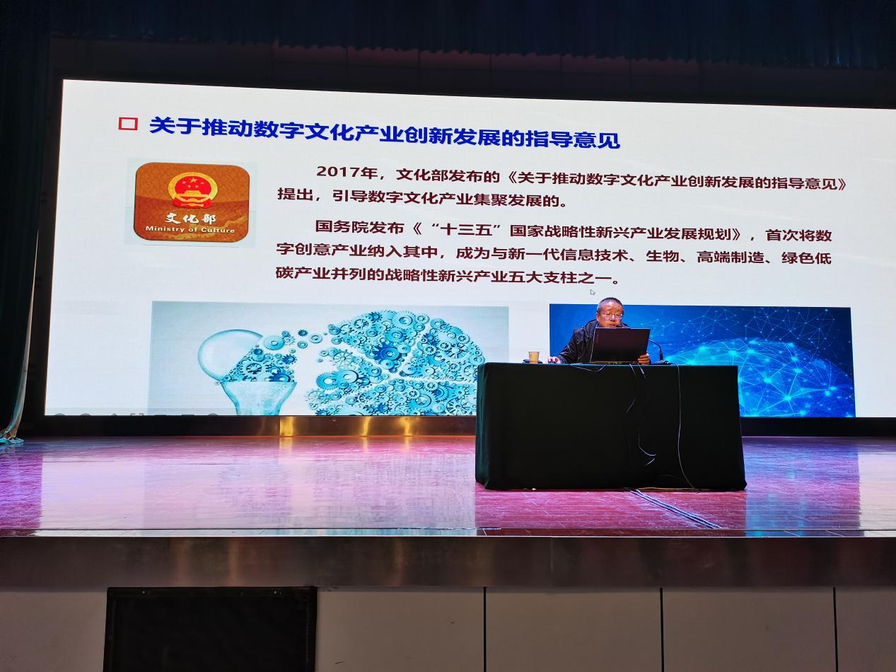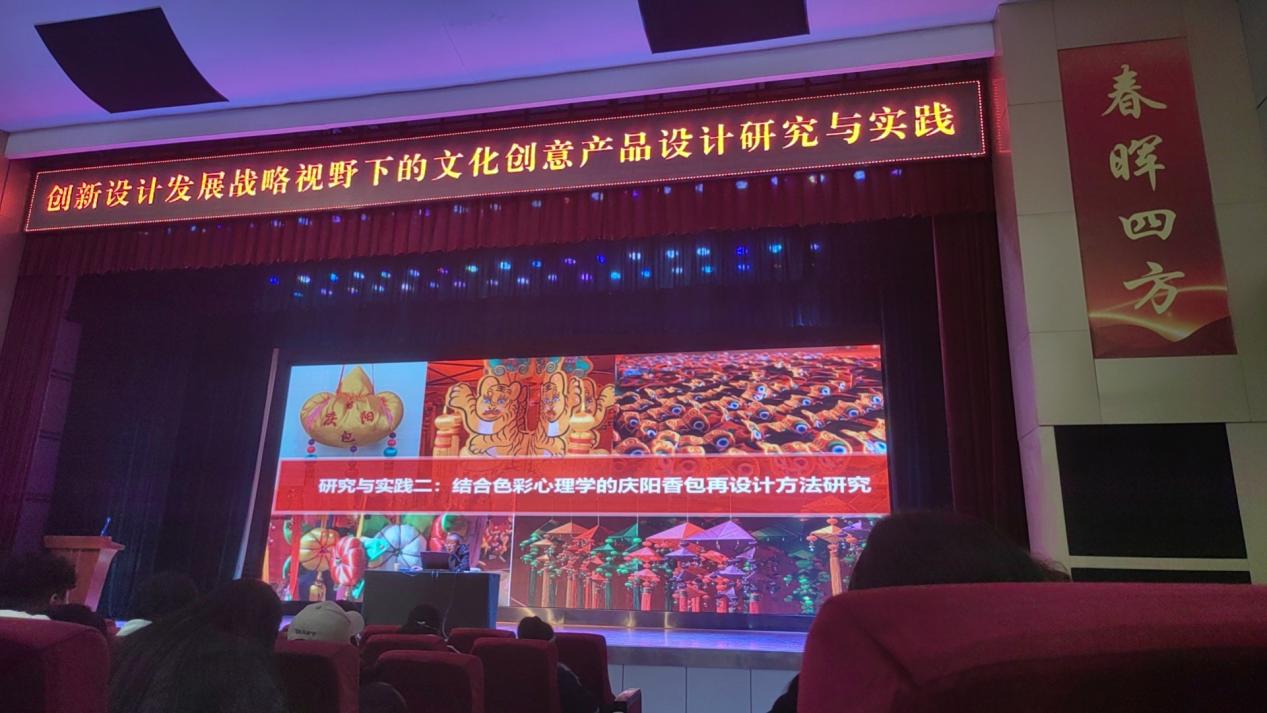 2023年12月4日晚,应兰州工商学院艺术学院邀请,兰州理工大学苏建宁教授在学术报告厅为我院师生做了题为《创新设计发展战略下文化创意产品设计研究与实践》的学术讲座。讲座由杨明院长主持,艺术学院领导班子成员、全体专任教师及全体学生参加讲座。