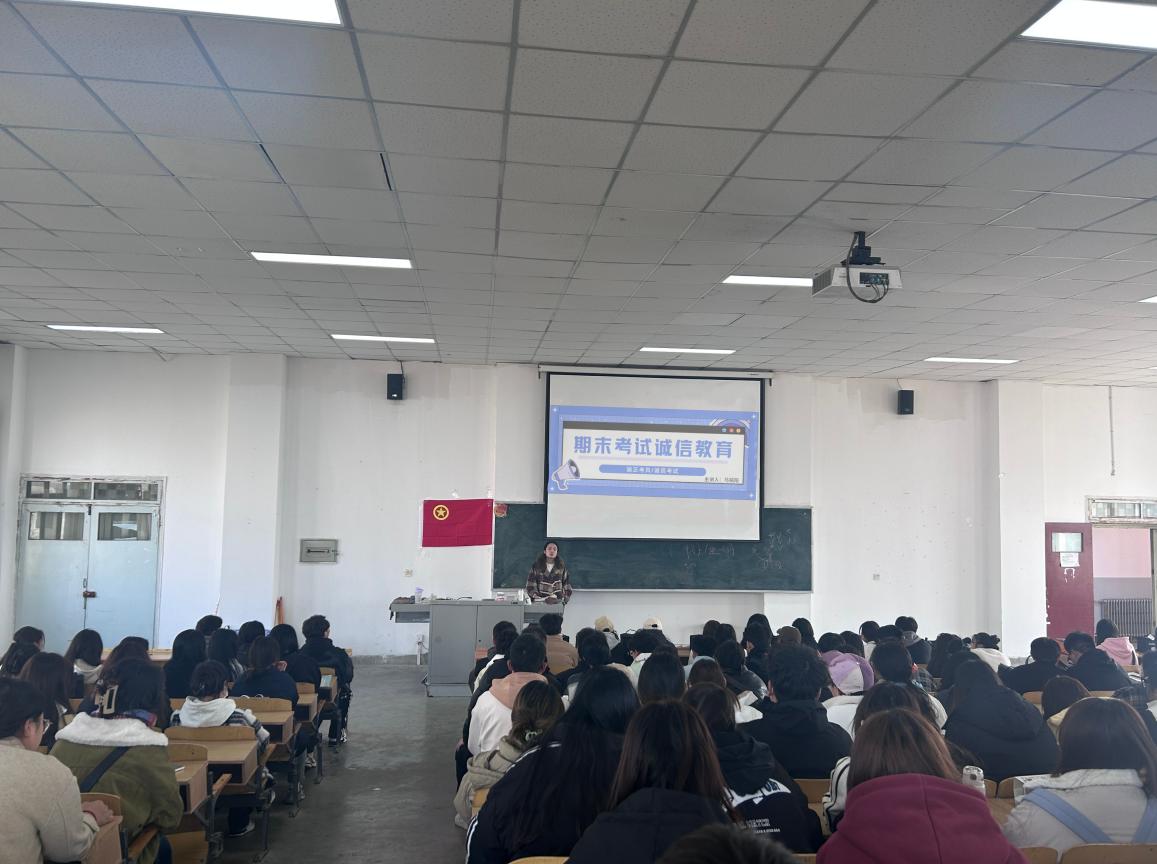 期末考试将至,一方面为培养同学们树立“诚信考试,文明做人”的理念,以积极向上的状态迎接即将到来的考试周;另一方面为确保学生安全离校,提高学生寒假期间的安全防范意识,1日晚至2日,我院各班组织召开诚信考试及安全教育主题班会,班会分别由各班辅导员老师主持。