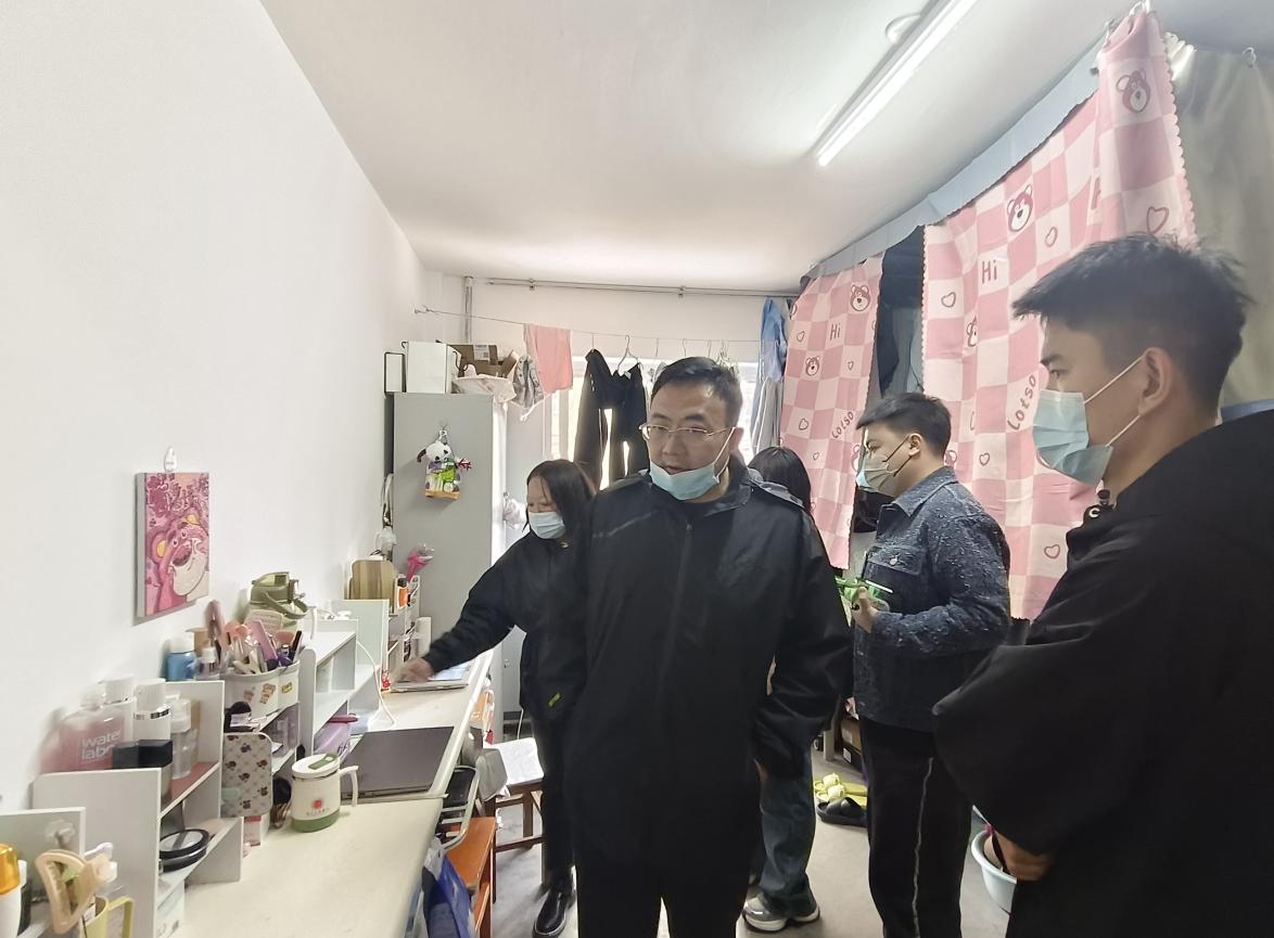 此次检查主要围绕学生宿舍卫生、宿舍用电安全、存放违规电器等安全隐患进行排查。首先,周院长询问各个宿舍同学假期离校留校情况,叮嘱同学们外出要注意安全,随后进行全面检查,在检查过程中发现部分宿舍存在安全隐患点和卫生问题,当即进行了引导,并督促整改。周院长再次强调宿舍安全的重要性,教育同学们要将安全放在第一位,不能存在侥幸心理,安全意识不可松懈,违规电器切记不能使用,提高安全防范意识,确保自身安全。周院长及各位老师重点关注了宿舍的卫生管理及用电安全等情况,对卫生状况良好的宿舍提出了表扬,指出宿舍的安全卫生反映出全体舍员的精神面貌和责任担当,希望同学们能保持优良作风,共创安全文明、舒适和谐的学习和生活环境。
