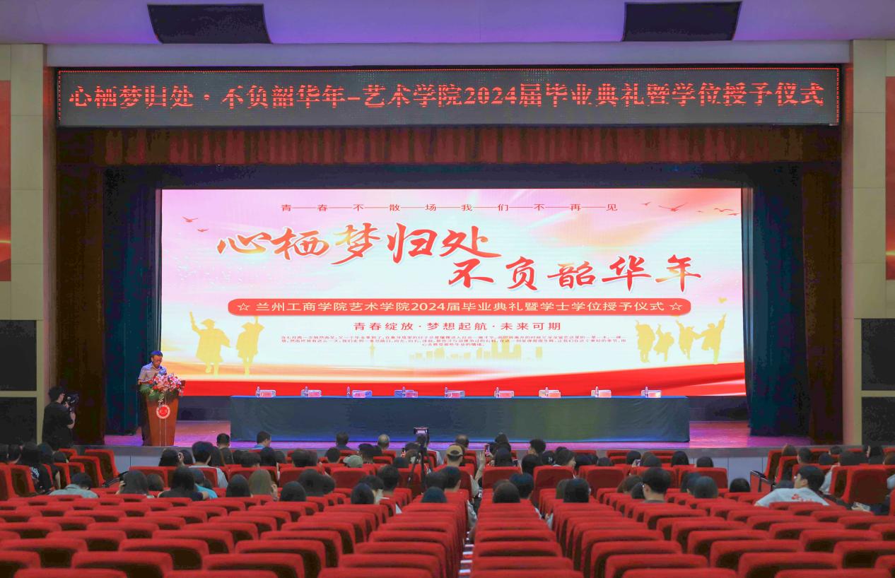 时光流逝,斗转星移。6月14日下午,艺术学院迎来了一场特殊而庄重的仪式,在学术报告厅隆重举行“心栖梦归处·不负韶华年”2024届学生毕业典礼暨学士学位授予仪式。兰州工商学院副校长张春庆教授,艺术学院院长杨明教授、教学院长徐越教授、教学院长王坤老师、行政院长茹作佳同志、行政院长助理花彤老师、办公室主任任文刚老师、教师代表、部分专任教师、2024届部分毕业生代表、无课的其他年级学生共计400余人参加此次毕业典礼。典礼由艺术学院教学院长王坤老师主持。