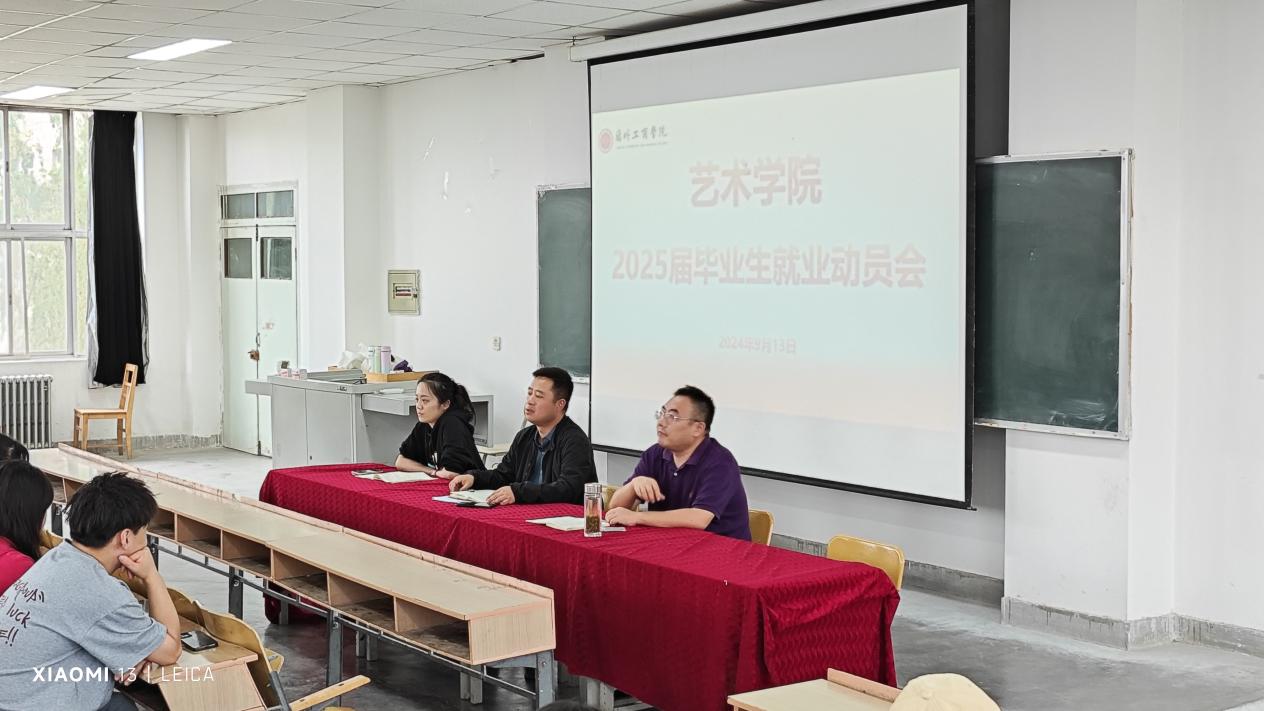 为帮助毕业生更好地了解当前就业形势,提高就业竞争力,实现顺利就业。2024年9月13日,艺术学院在善问楼415教室召开了2025届毕业生就业动员大会。艺术学院行政院长张德红,党委副书记花彤,毕业班辅导员马铭阳、严渝林及全体2025届毕业生参加了会议。