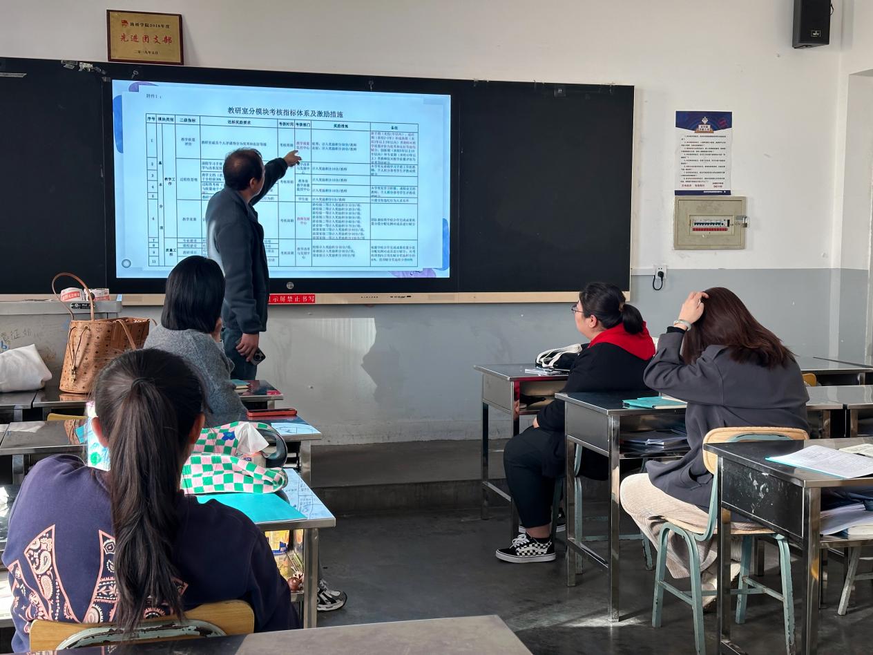 教研室各成员共同学习了《教研室分模块考核指标体系及激励措施》《兰州工商学院关于切实加强教研室建设提高教师业务能力的实施方案(修订)》等文件。多位教师结合自身经验,分享了课堂教学、项目申报和参加学科竞赛的心得。最后,教研室成员围绕课堂教学、教学竞赛、学科竞赛、教学能力提升等主题进行交流研讨。