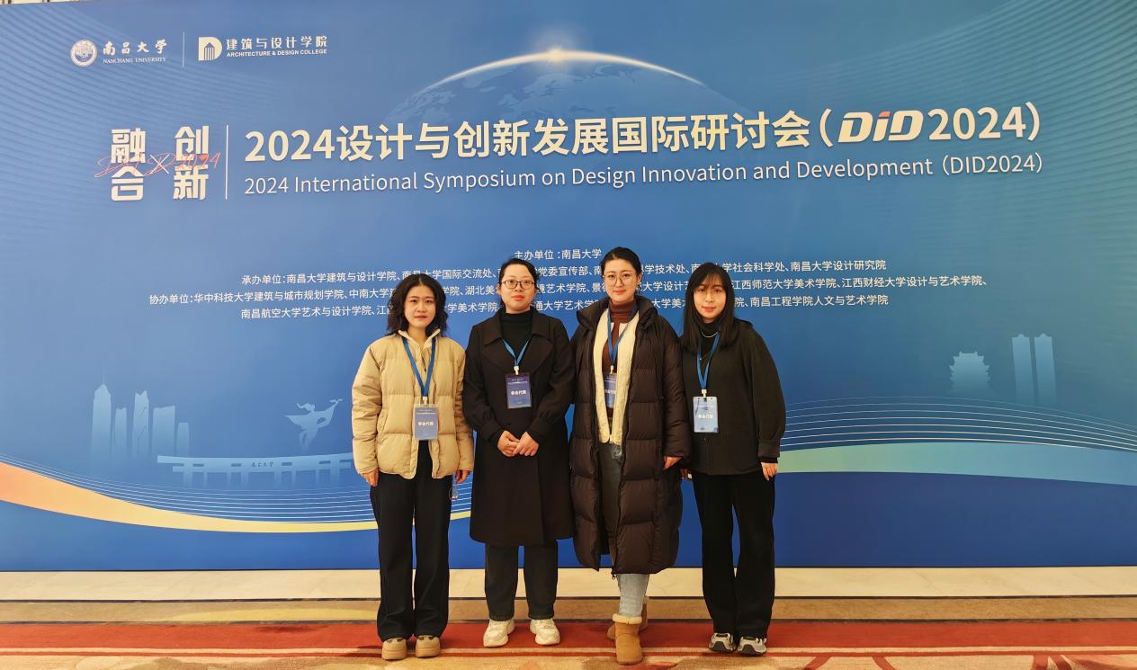 2024年12月20-22日,设计与创新发展国际研讨会(DID2024)在江西南昌举行。此次研讨会由南昌大学主办,旨在促进来自不同学科背景的专家学者共同分享设计创新的新理念、新技术和新实践,共同描绘设计未来的宏伟蓝图。我校选派艺术学院范芸、潘瑶、马玲、高璐四位教师参加了此次会议。