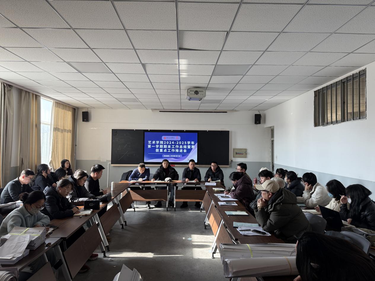 2025年1月11日,艺术学院在善问楼 410会议室召开了2024-2025学年第一学期工作总结暨寒假工作安排部署会。学院教学院长徐越、王坤,行政院长张德红及全体教师参加了会议,会议由学院党委副书记花彤主持。