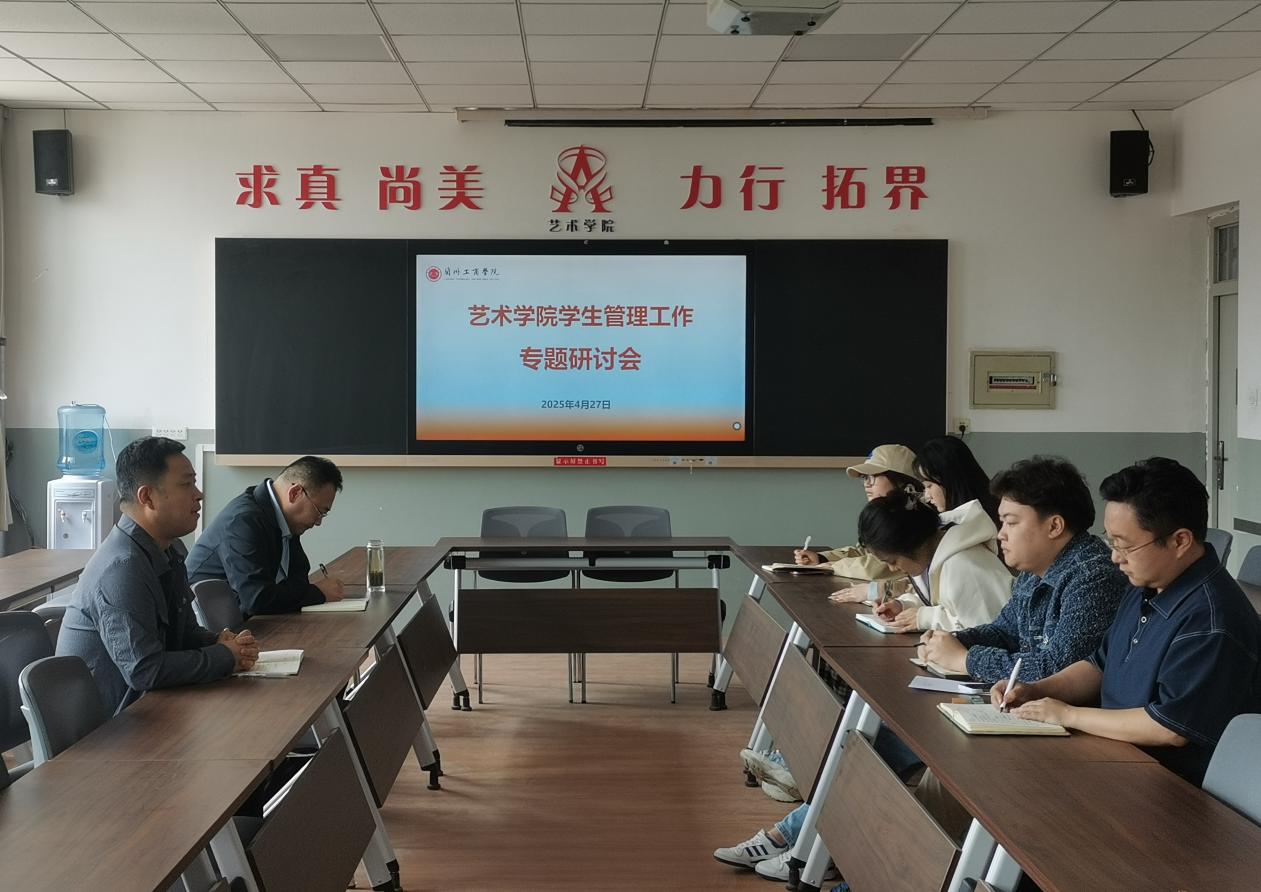 为进一步提升学院学生管理工作水平,推动学风建设及学生安全教育工作。4月27日,艺术学院在善问楼410会议室召开了学生管理工作专题研讨会。学院党委副书记花彤、行政院长张德红及全体辅导员参加了此次会议,会议围绕学生学业管理和安全教育工作展开深入探讨与交流。